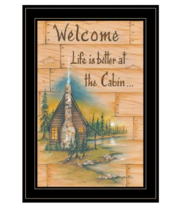 “Life is Better at the Cabin” by Mary June Ready to Hang Framed Print Black Frame
