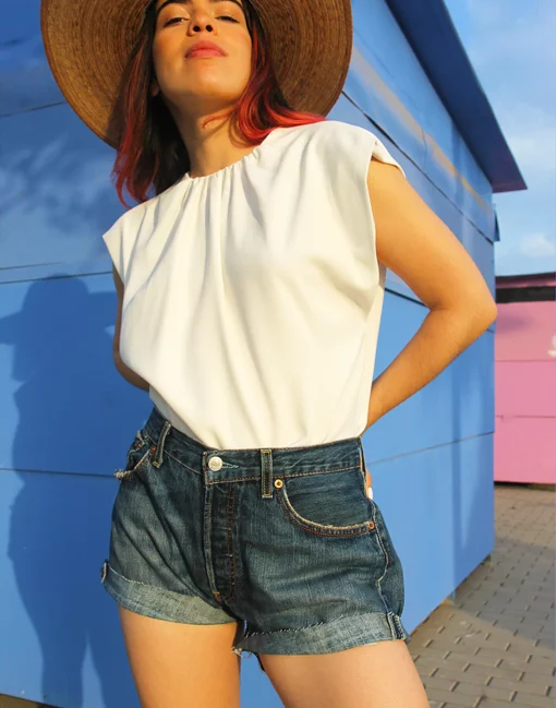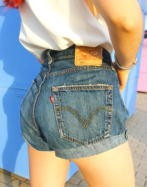 Actual measurements – 32″(81cm) waist – 40″(102cm) hips – 12″(30cm) outer leg – 11″(28cm) rise.
