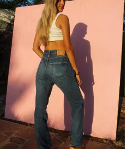 Vintage 501 Levi’s jeans in a dark blue denim.