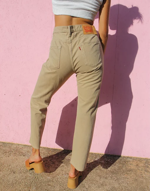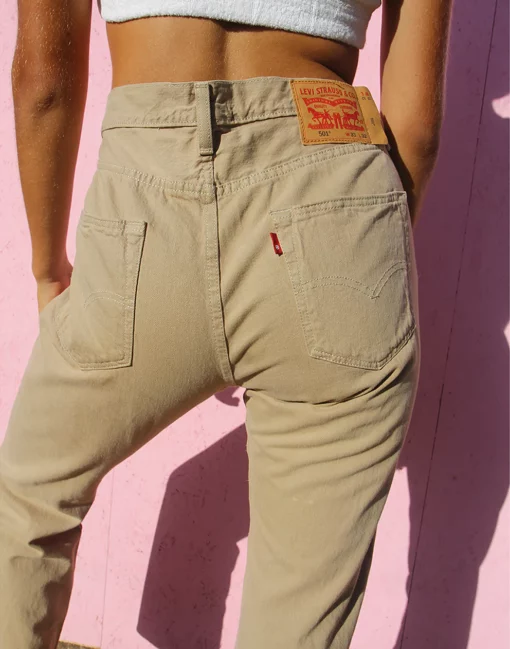 Vintage 501 Levi’s jeans in a pale tan brown denim.