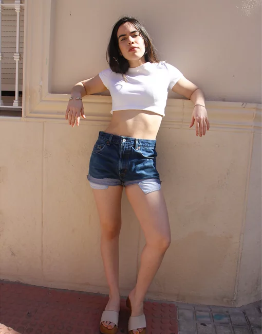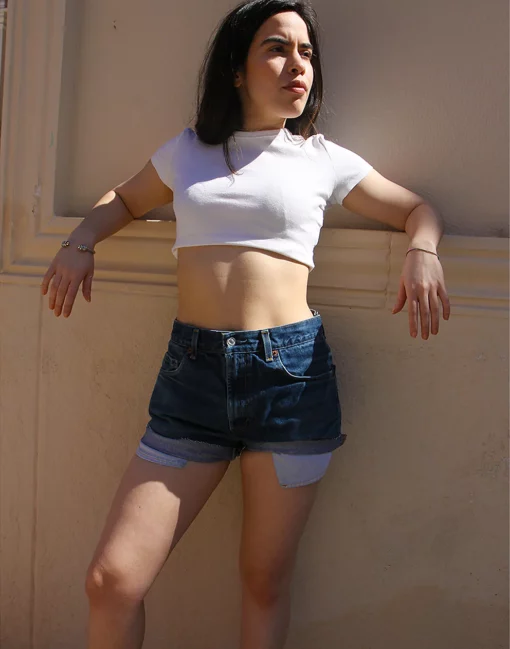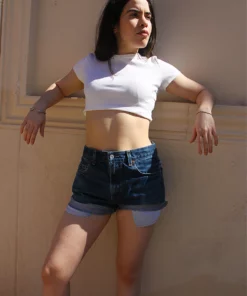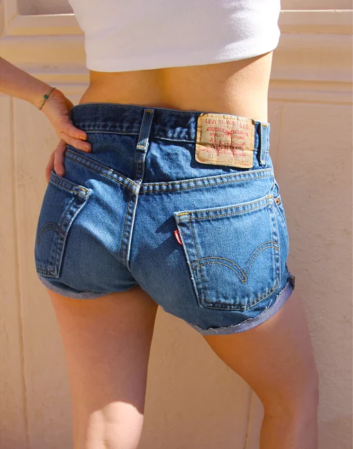Actual measurements – 28″(71cm) waist – 36″(91cm) hips – 11″(29cm) inner leg – 11″(29cm) rise.