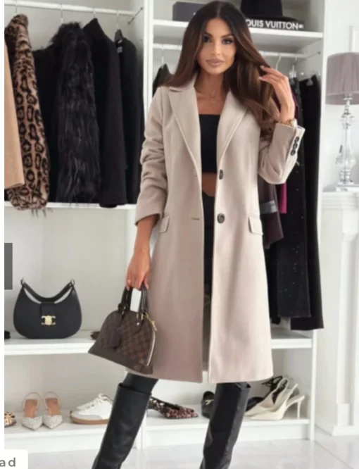 Abrigo cuello solapa, dos botones y dos bolsillos. Modelo recto, no es entallado. Una prenda clásica y a la vez en tendencia que siempre deberíamos tener en nuestro armario.