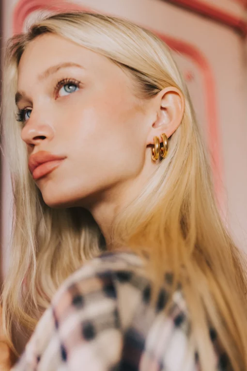 Pendiente de acero quirúrgico, hipoalergénico de alta calidad con pulido final de polvo de oro
