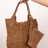 Bandolera de piel, serraje. Estampado en animal print en tono taupe. Cierre cremallera en tono dorado.
