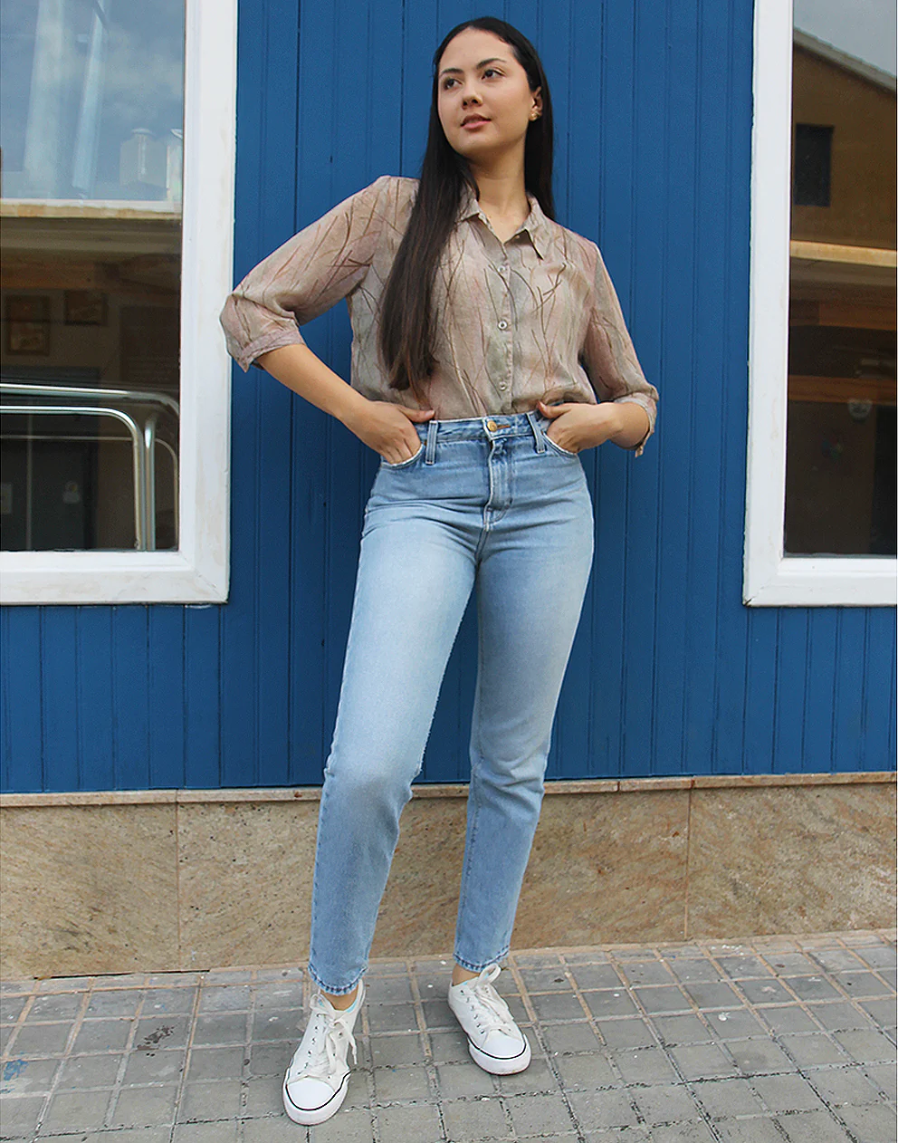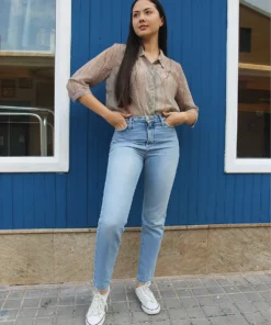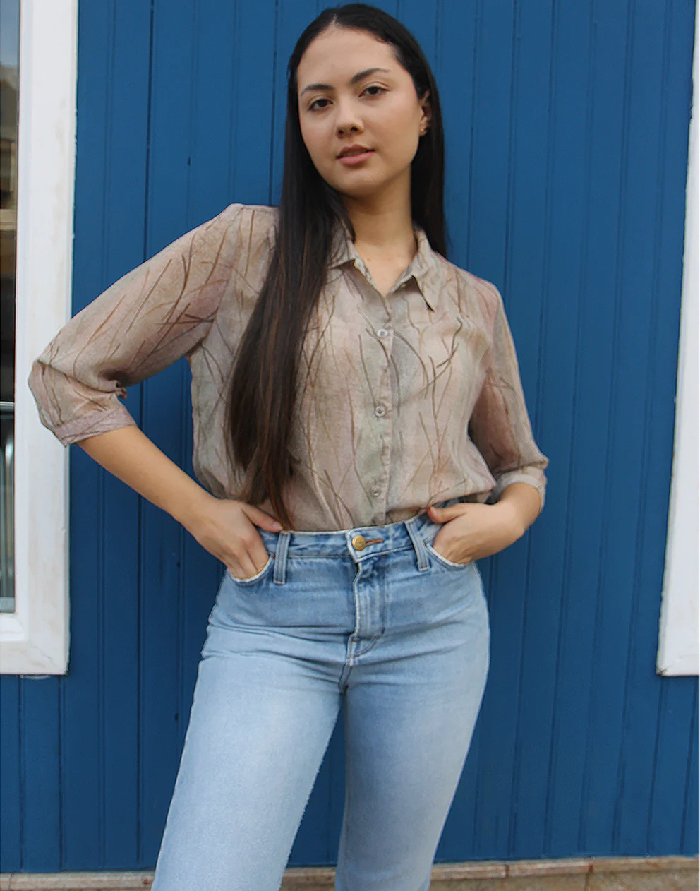 Measurements – 44″/ 112cm bust, 17″/ 43cm sleeve length, 24″/ 61cm shirt length.