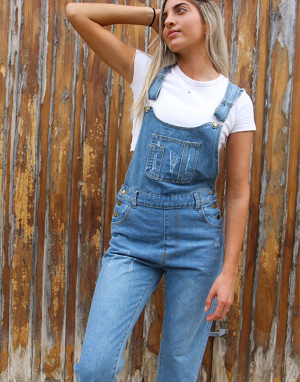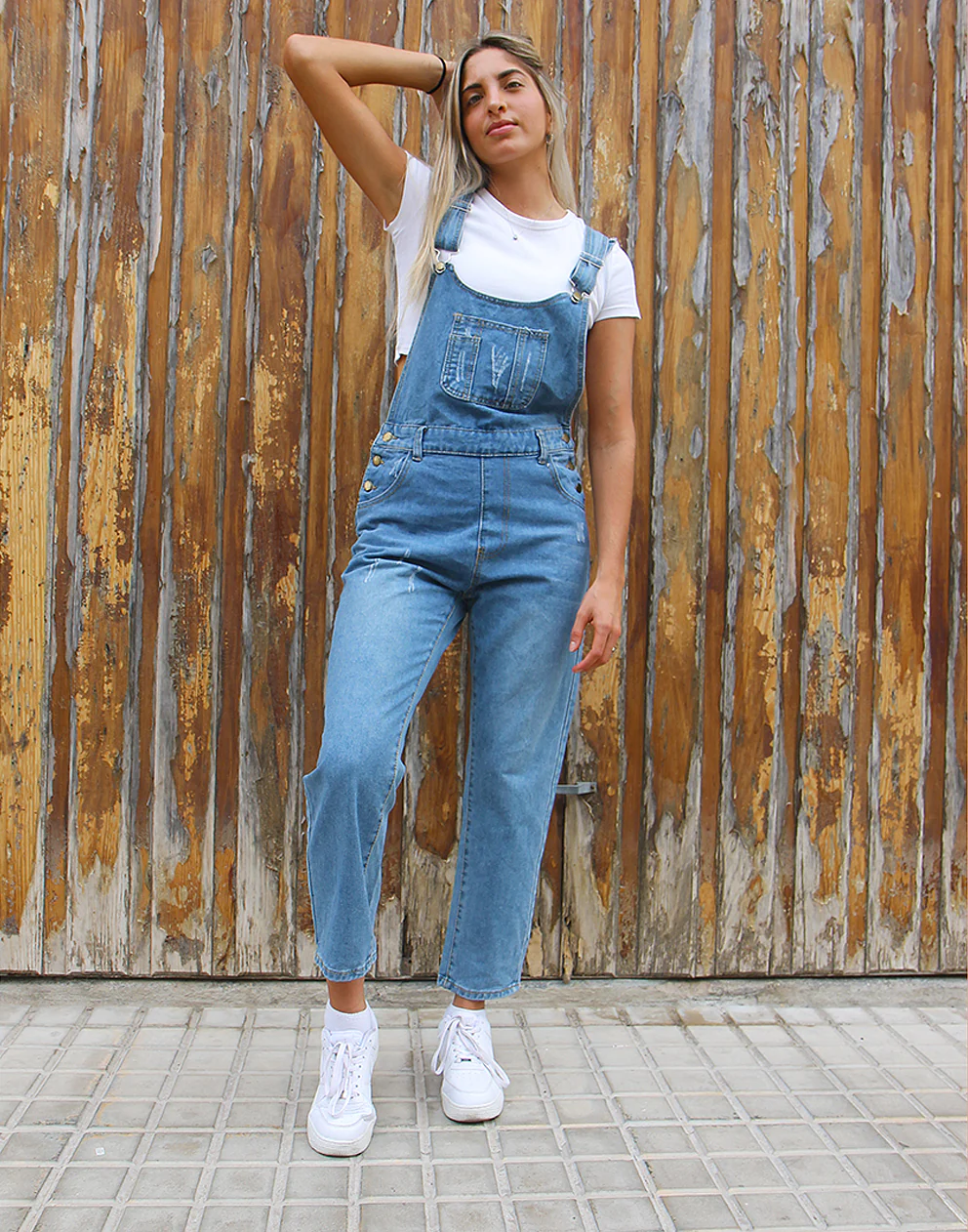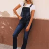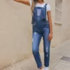 Measurements – 8.5″(22cm) top of bib – 11″(28cm) bottom of bib – 30″(82cm) waist – 38″(97cm) hips – 29″(74cm) inner leg – 11″(28cm) rise.