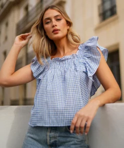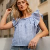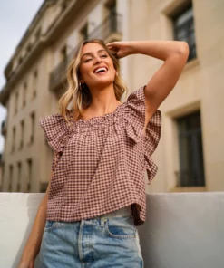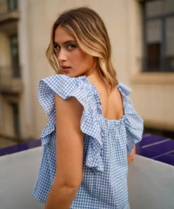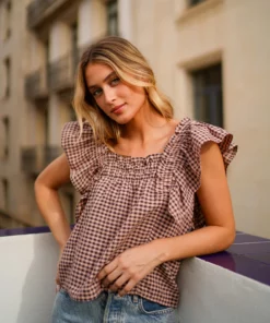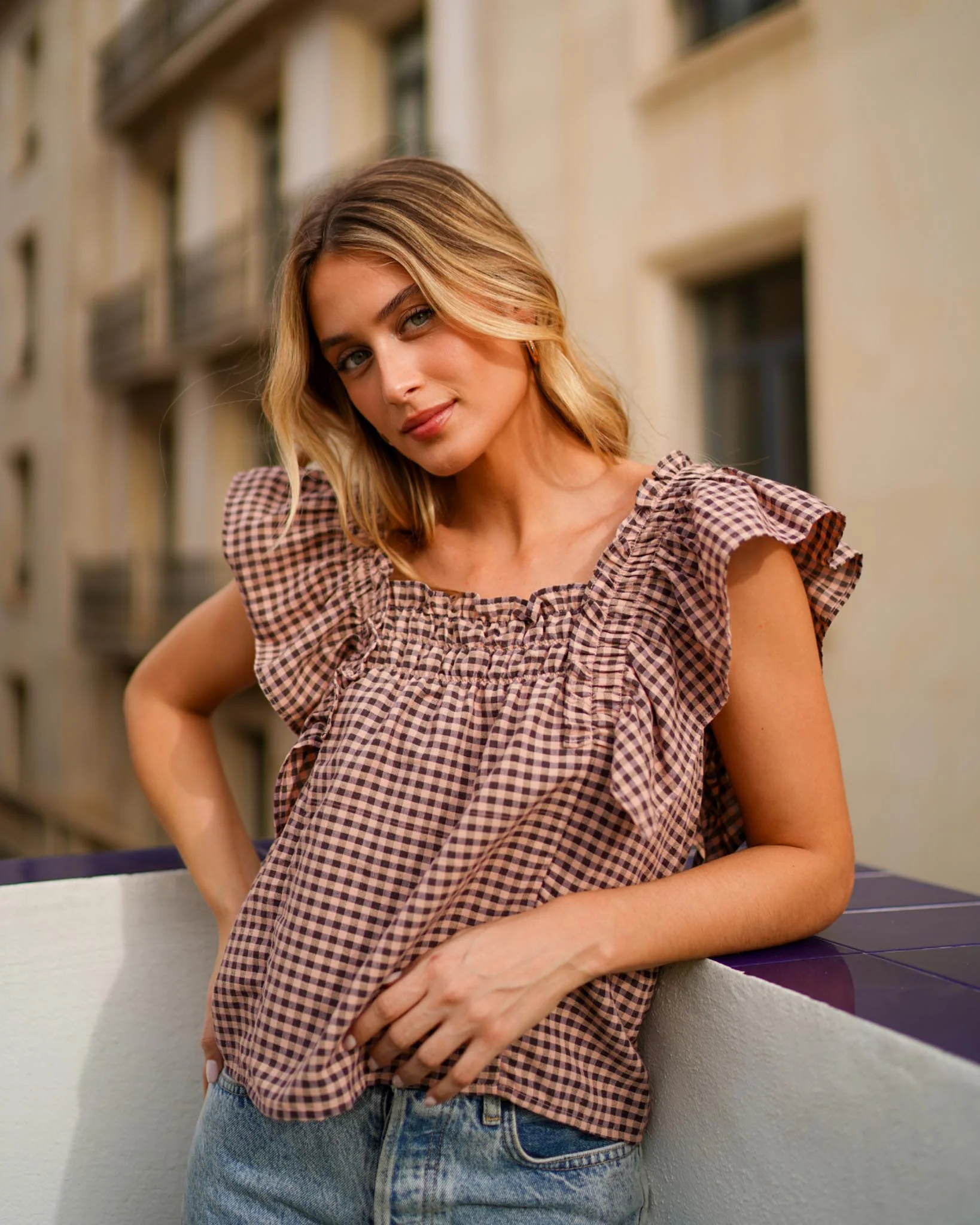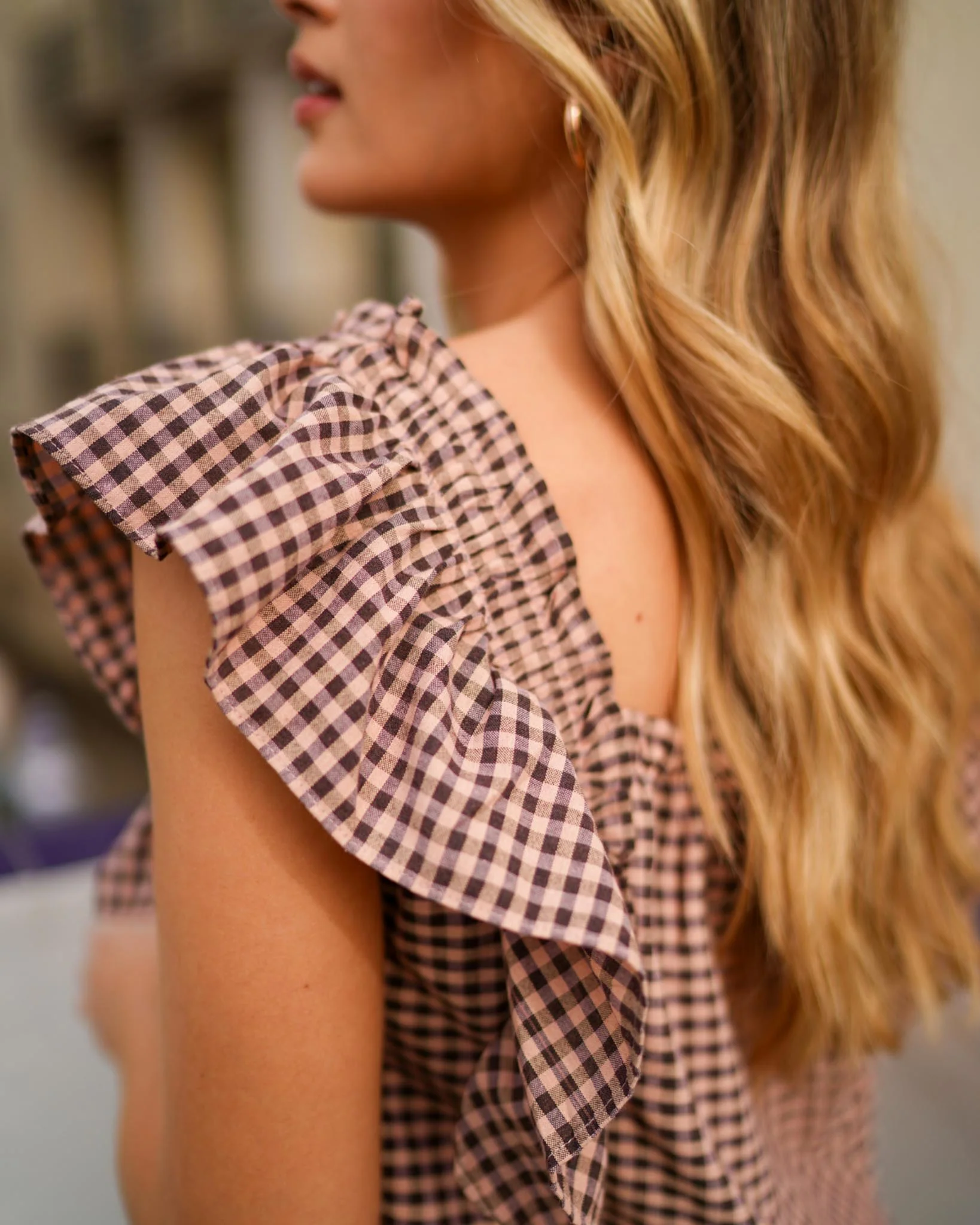 - Blusa a cuadros de corte amplio confeccionado en algodón.