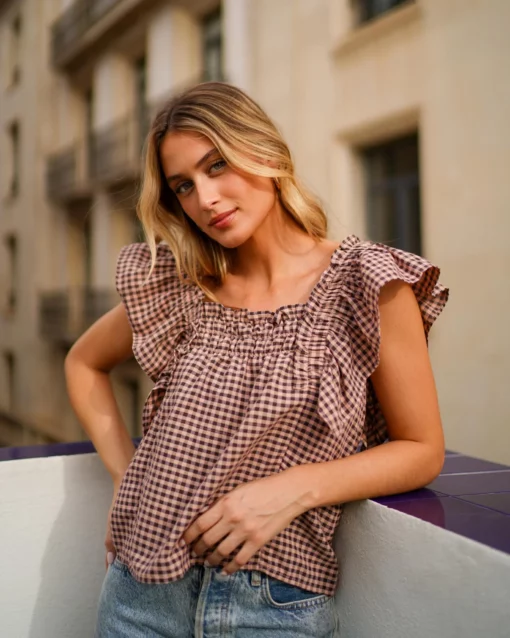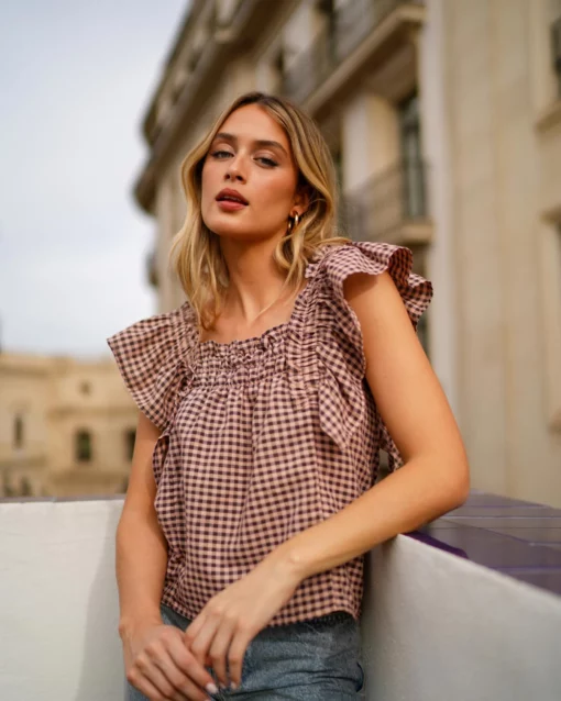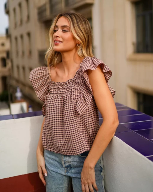 - Blusa a cuadros de corte amplio confeccionado en algodón.