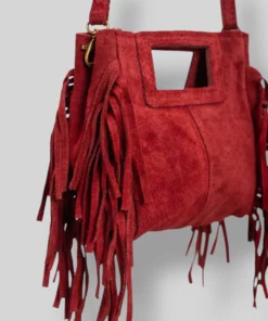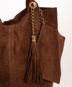 Bolso de piel (serraje). Doble asa. Cierre cremallera. Bolsillo adicional con cierre cremallera. Detalle de pompon.