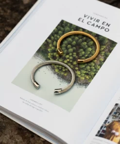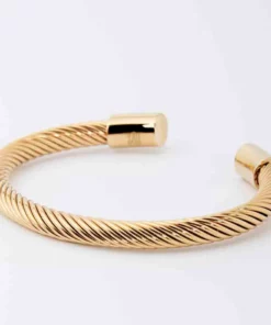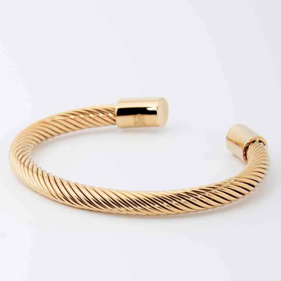 Pulsera rígida de acero quirúrgico 316L hipoalergénico de alta calidad, pulido final con polvo de oro mediante ionización.
