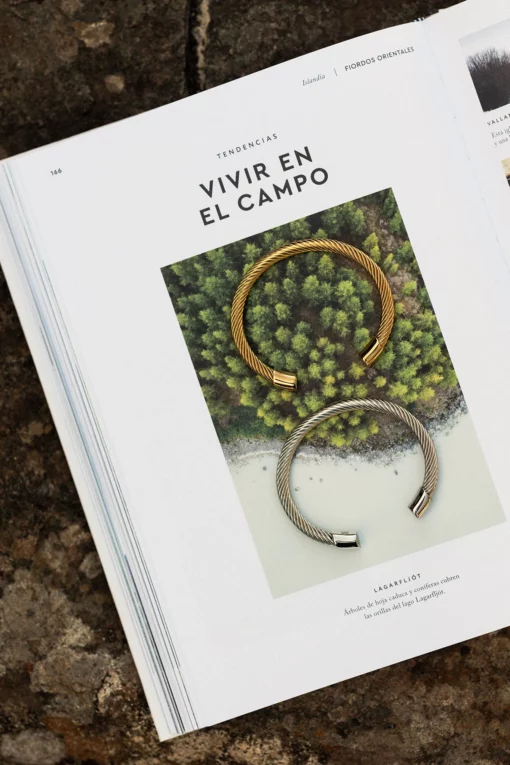 Pulsera rígida de acero quirúrgico 316L hipoalergénico de alta calidad, pulido final con polvo de oro mediante ionización.