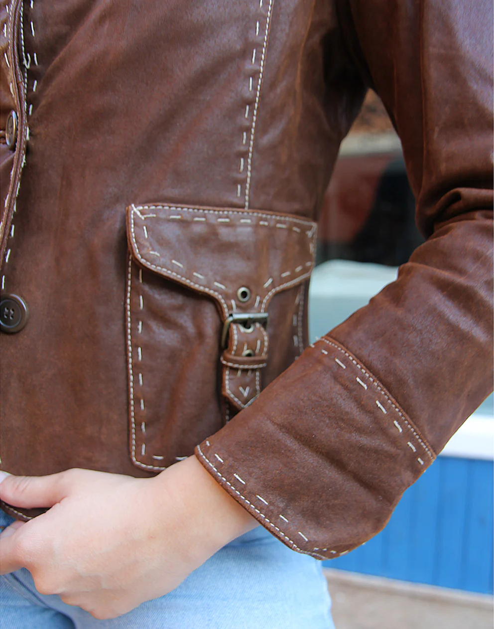 Measurements – 36″(91cm) bust – 23″(58cm) sleeve length – 22″(56cm) jacket length.