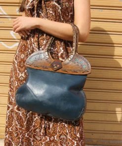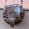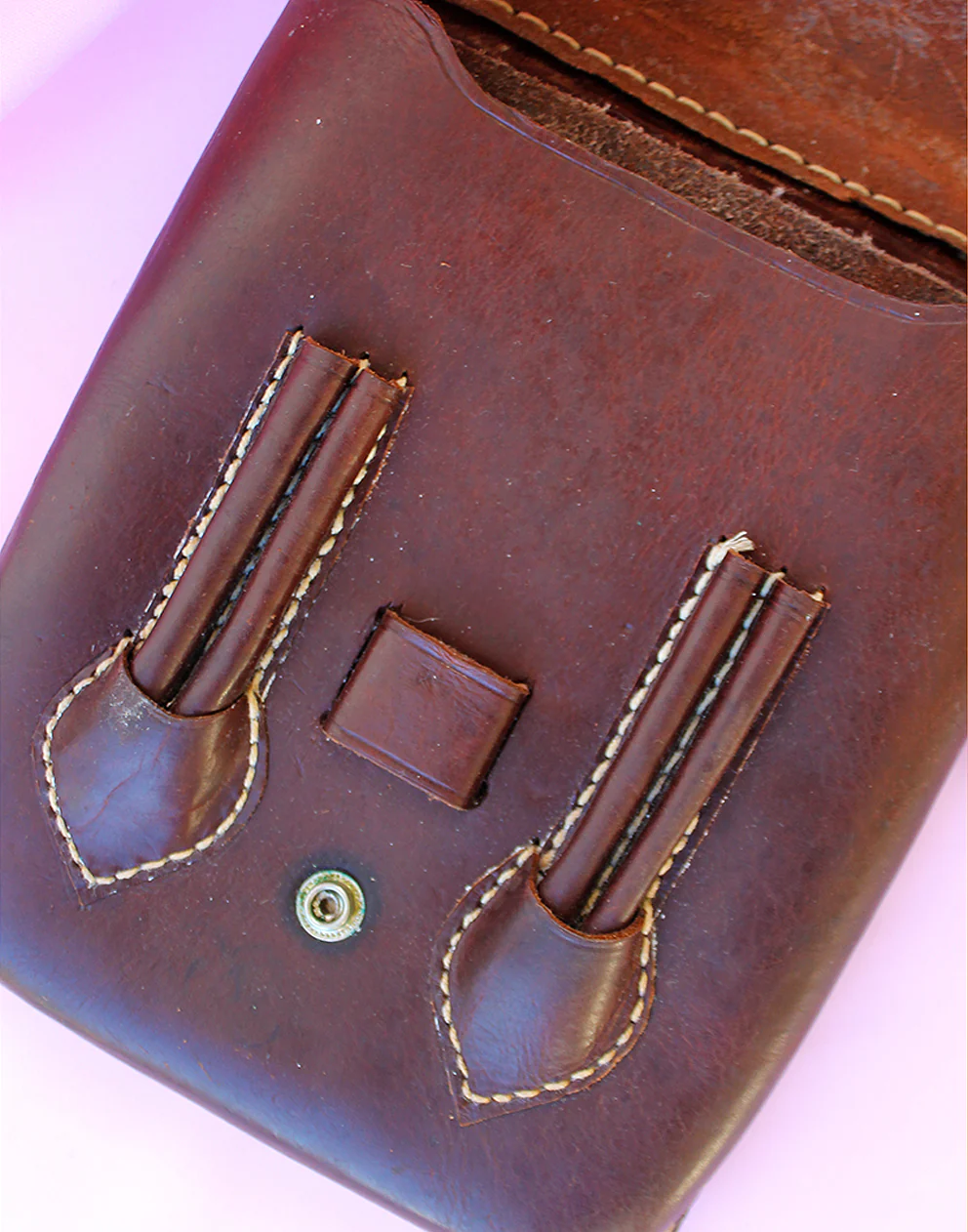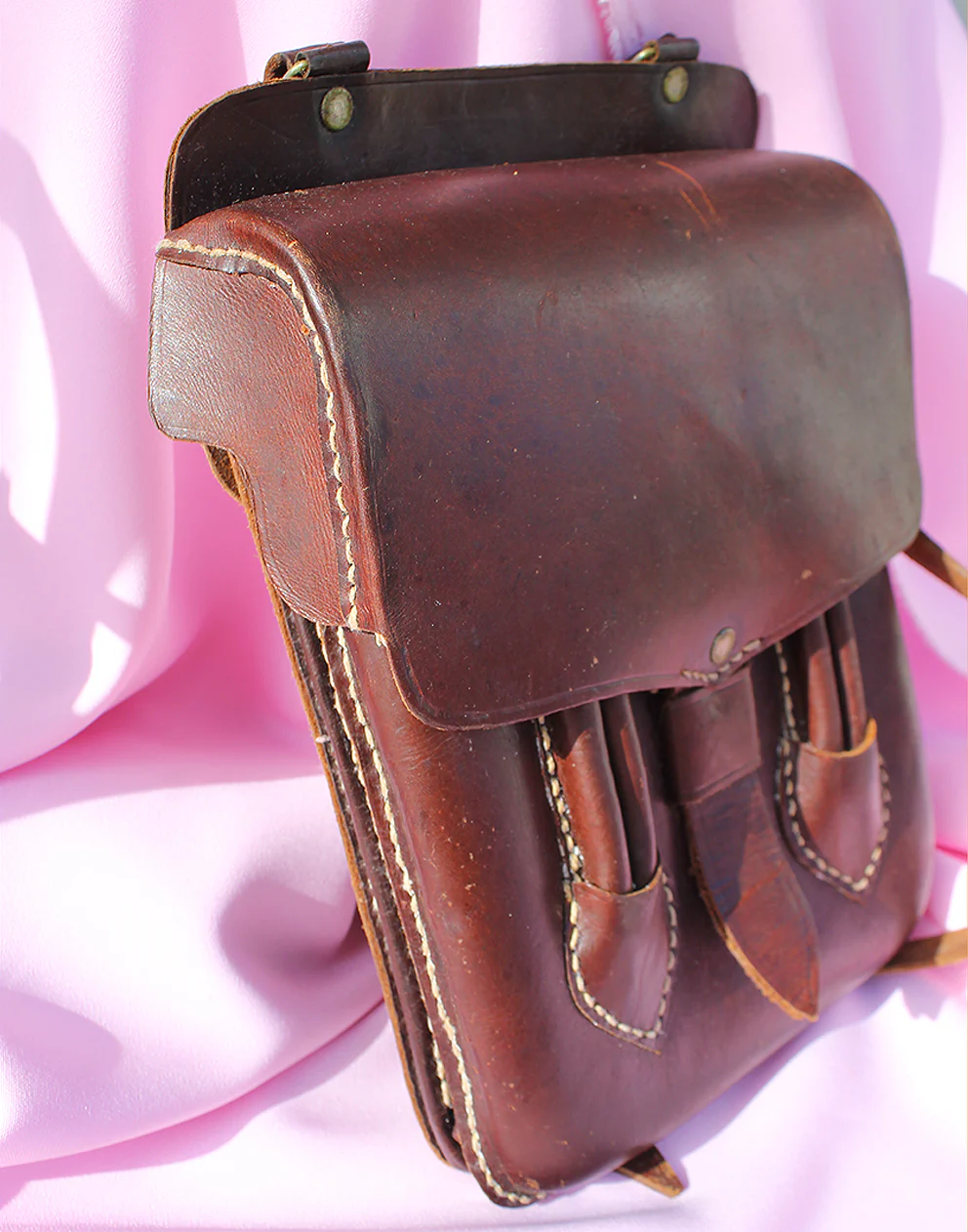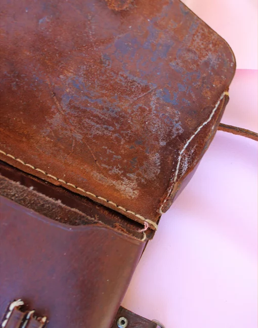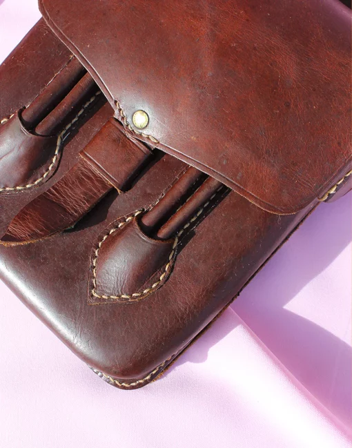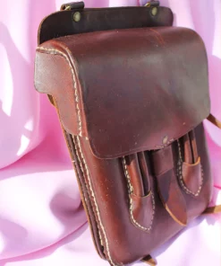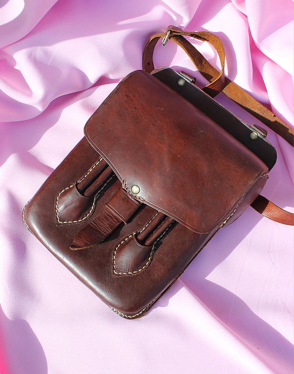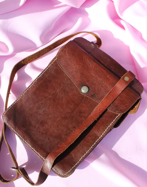 Original vintage real leather small satchel bag in a dark brown colour with contrasting stitching.