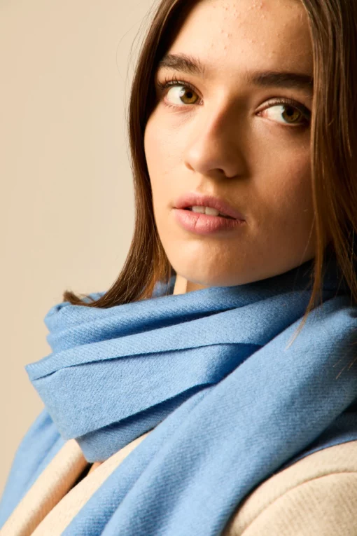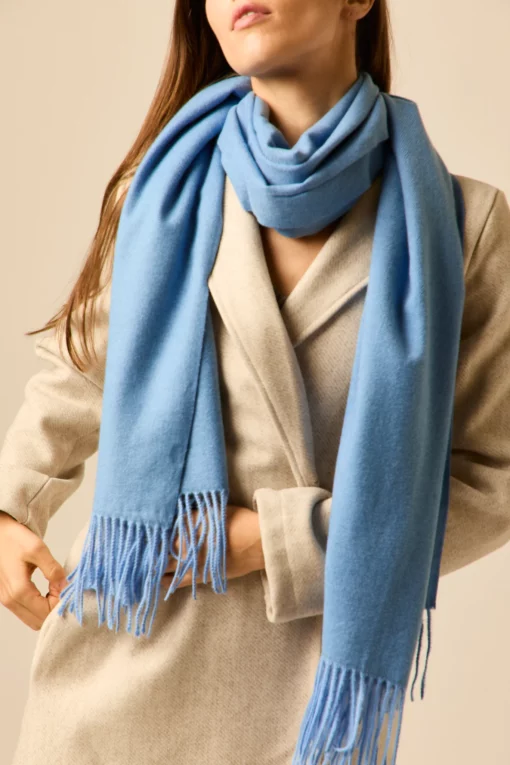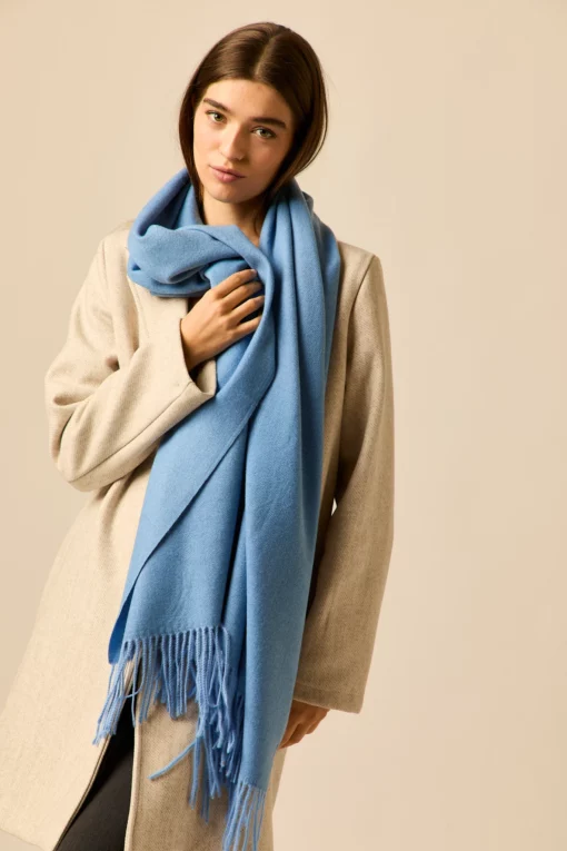 Bufanda lisa flecos azul celeste