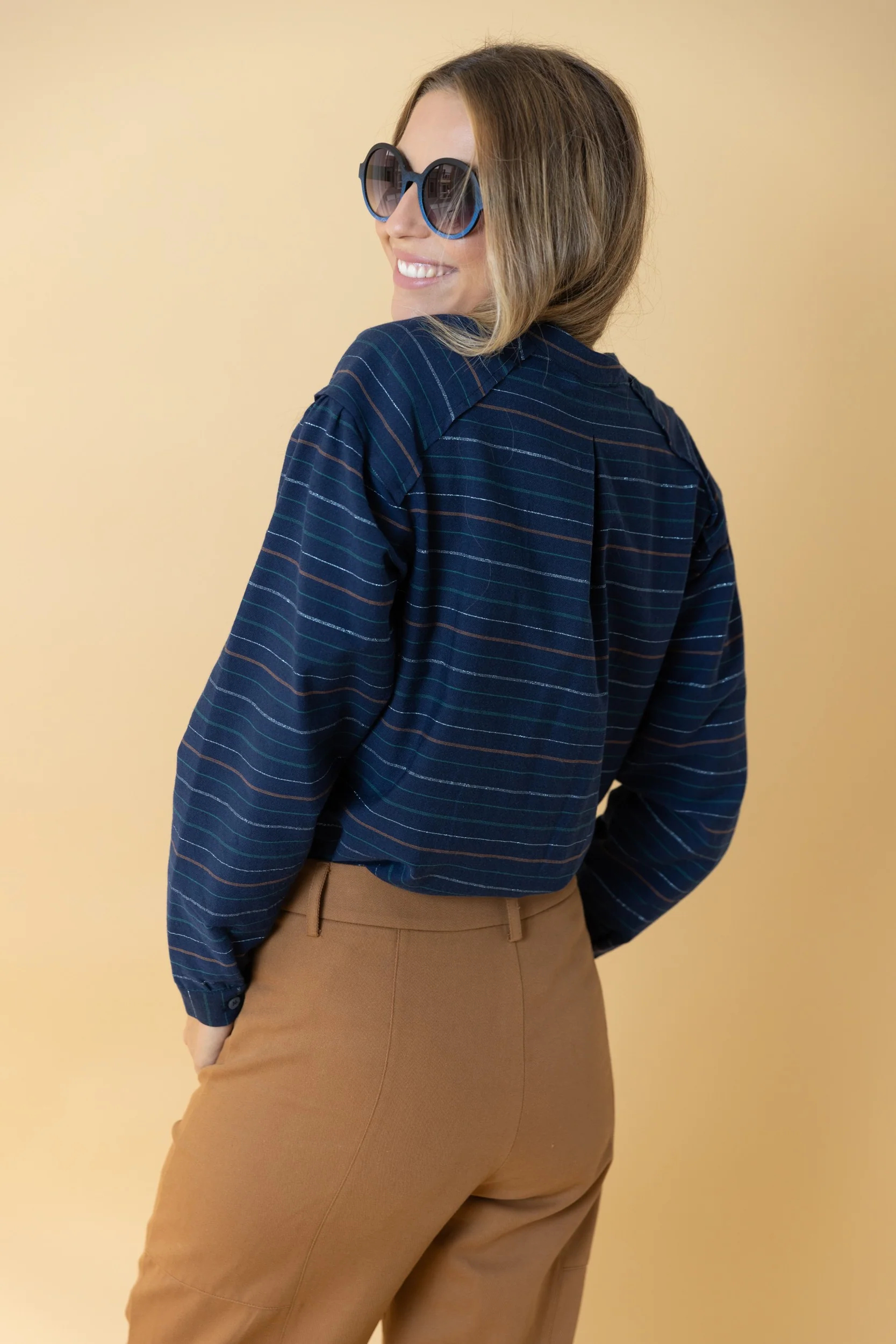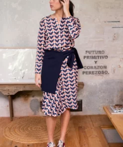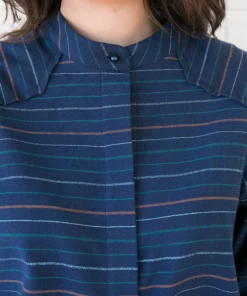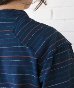 – Manga caída con adorno en el hombro con las rayas a contra.