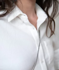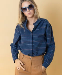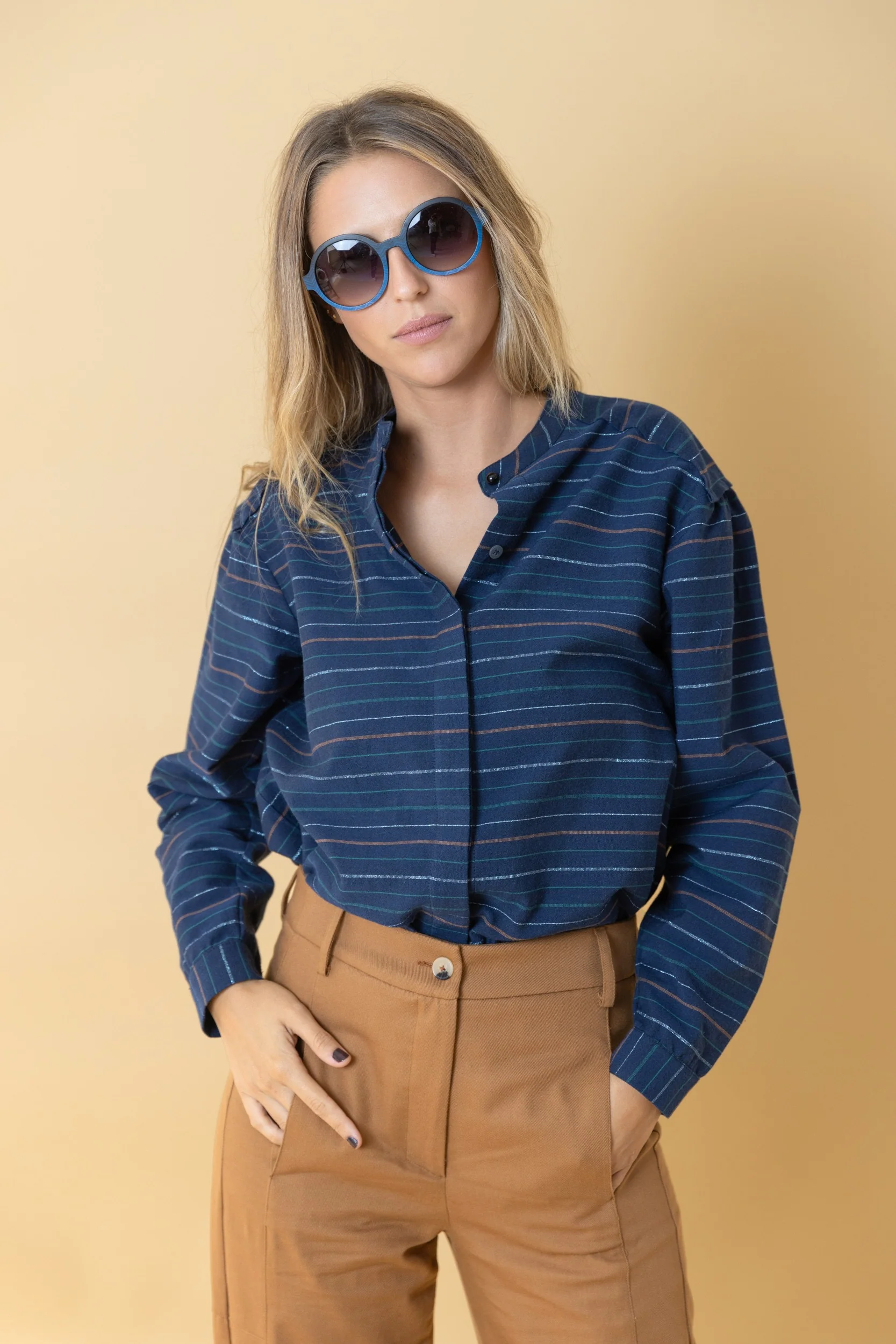 Camisa amplia realizada en un tejido cien por cien algodón y con un hilo lurex.
