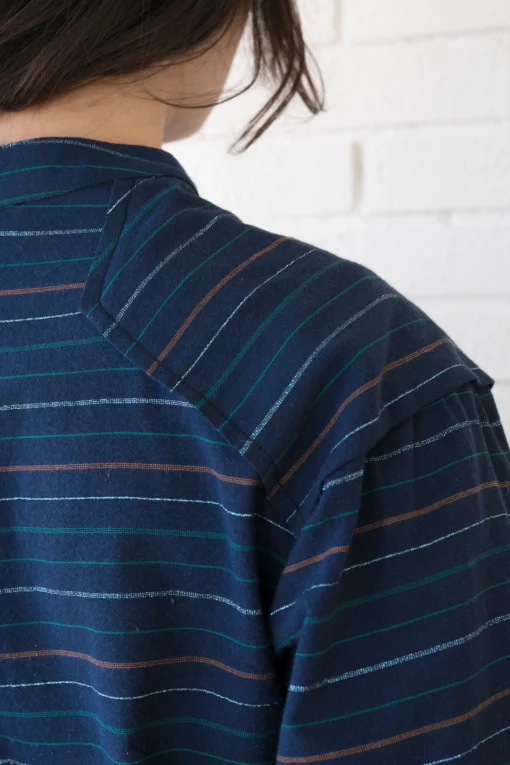 – Manga caída con adorno en el hombro con las rayas a contra.
