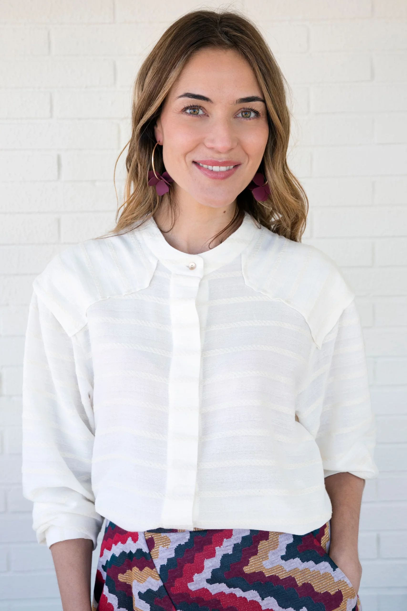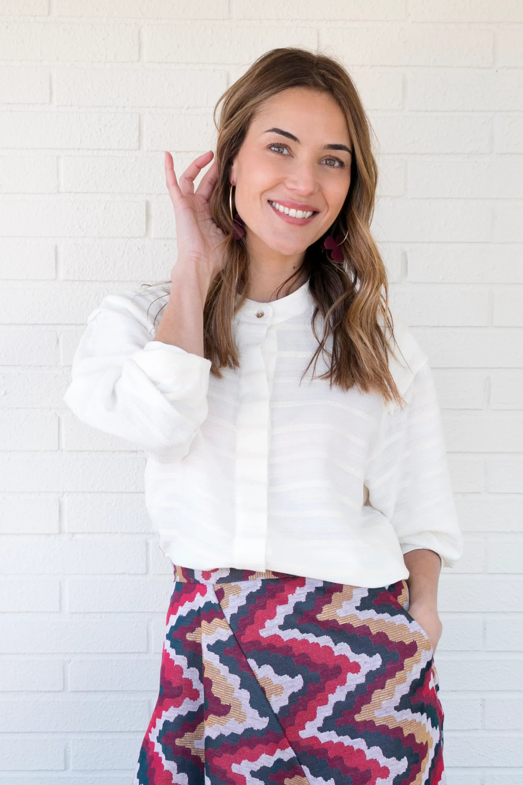 Camisa amplia realizada en un tejido de algodón y viscosa suave con dibujo trenzado al tono. Si dudas en la talla y no quieres que te quede muy amplia te recomendamos una talla menos.