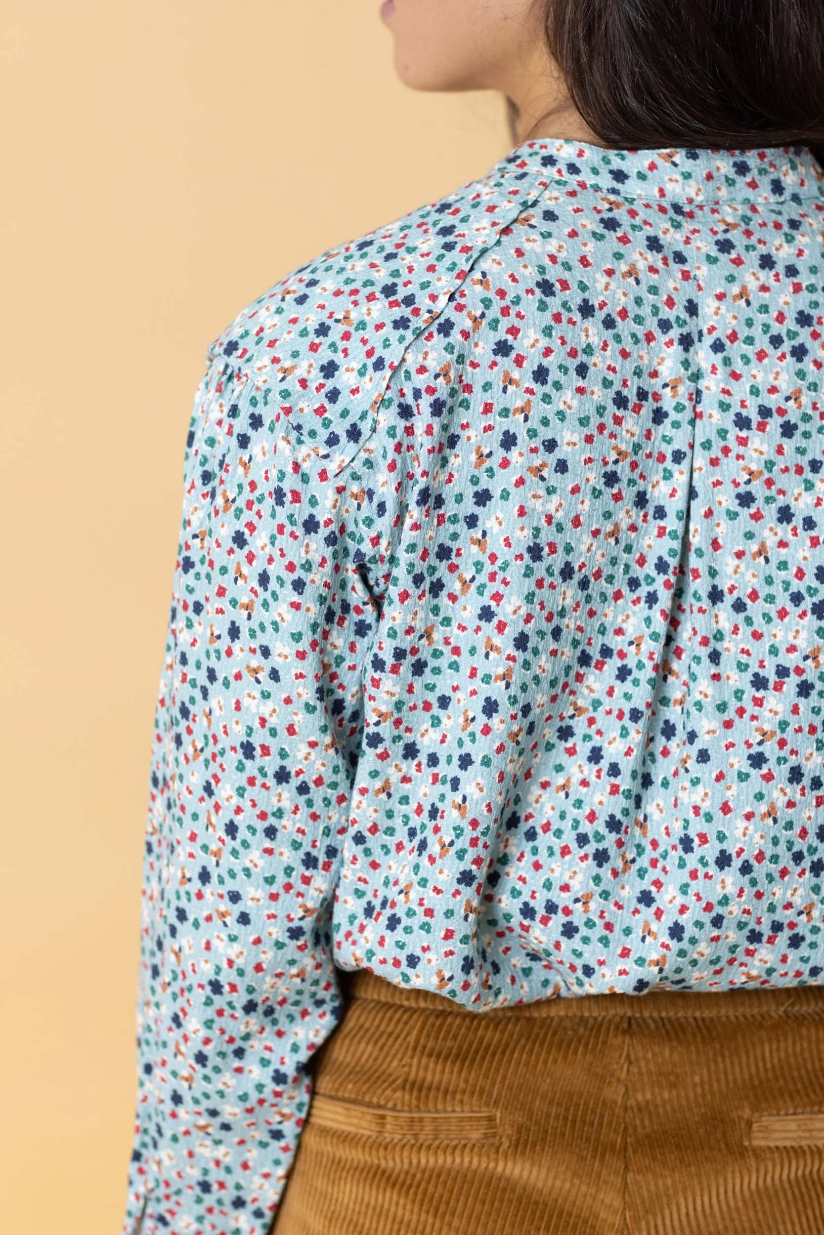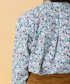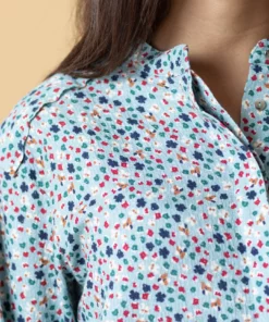 Camisa amplia realizada en un tejido de algodón y viscosa suave con dibujo estampado turquesa.