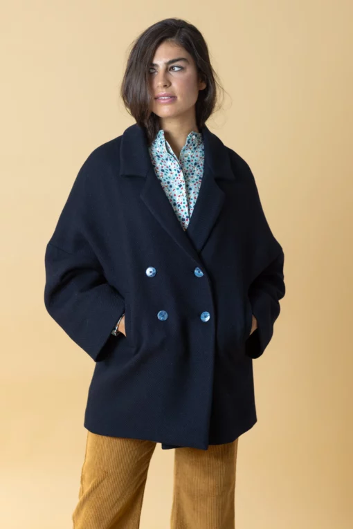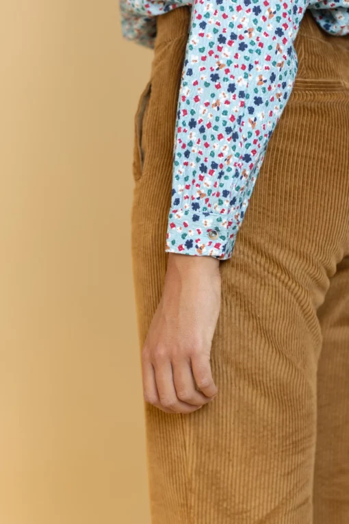 Camisa amplia realizada en un tejido de algodón y viscosa suave con dibujo estampado turquesa.