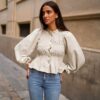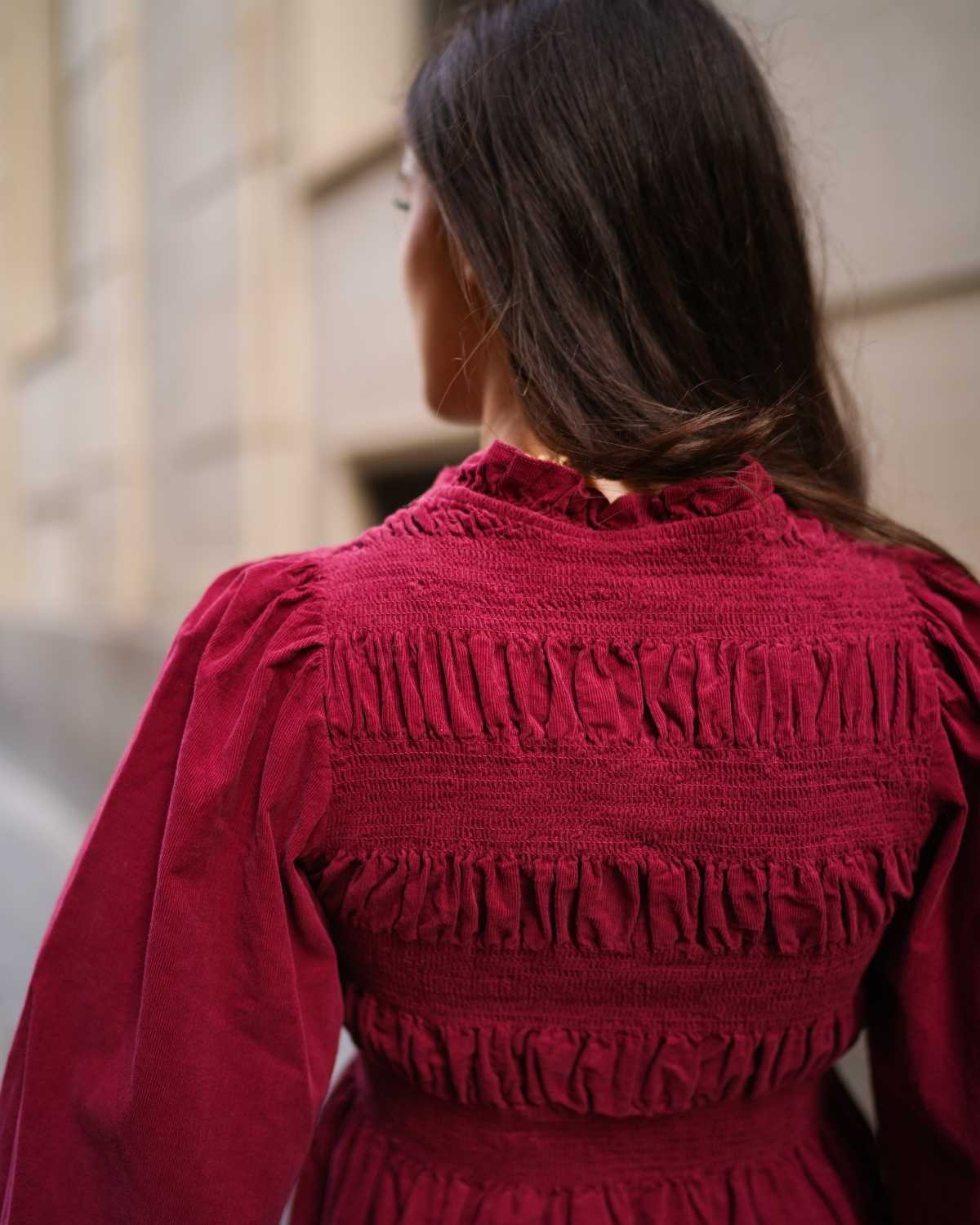 - Camisa de manga larga en tejido de pana y cierre botonadura frontal.