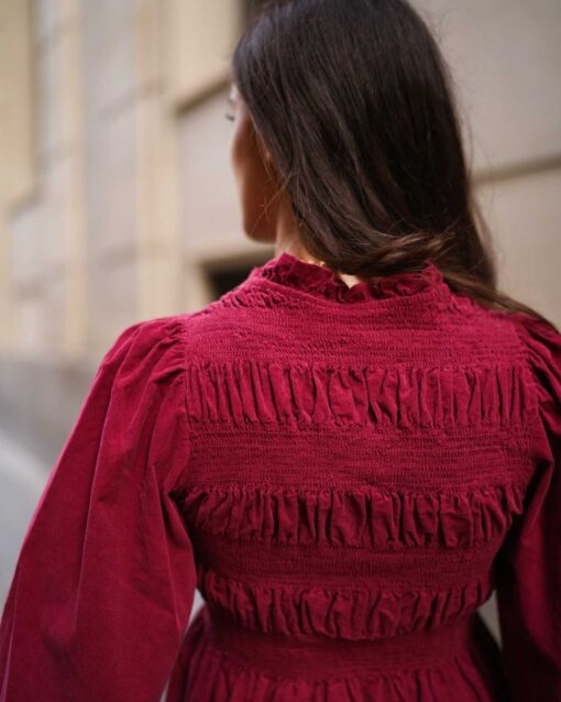 - Camisa de manga larga en tejido de pana y cierre botonadura frontal.
