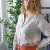 Camisa realizado en un tejido de algodón y viscosa sobre un estampado claro.