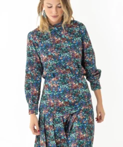Camisa realizado en un tejido de algodón y viscosa sobre un estampado claro.