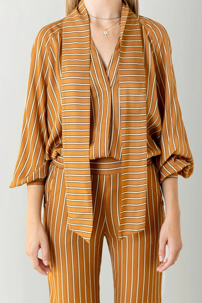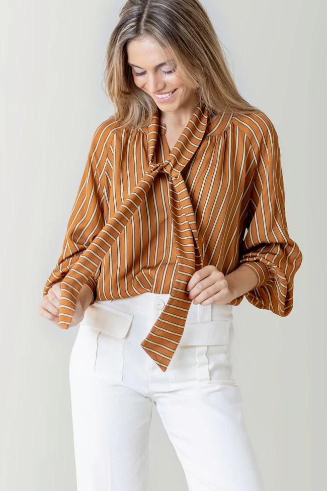 Camisa color caramelo con rayas al tono en tejido 100% algodón.