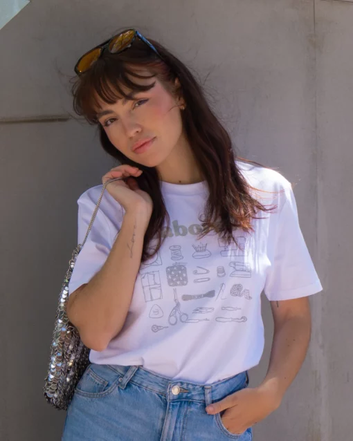 Camiseta básica con serigrafía en el frontal, manga corta y cuello a la caja.