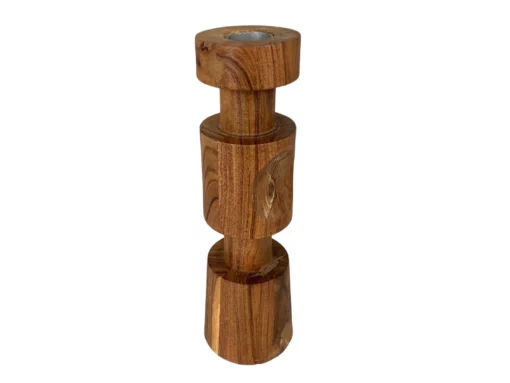 El Candelabro Madera Café es una pieza de decoración perfecta para traer un toque de elegancia y calidez a tu hogar. Fabricado con madera sólida de café con tono claro, este candelabro está específicamente diseñado para aportar diferentes niveles de iluminación con sus tres luces. Una excelente manera para mejorar la atmósfera de tu salón.