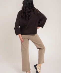 Jersey punto grueso, con bodoques y dibujo calado. Cuello chimenea. Manga larga. Corte amplio. Super cómodo y favorecedor.