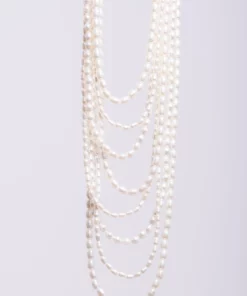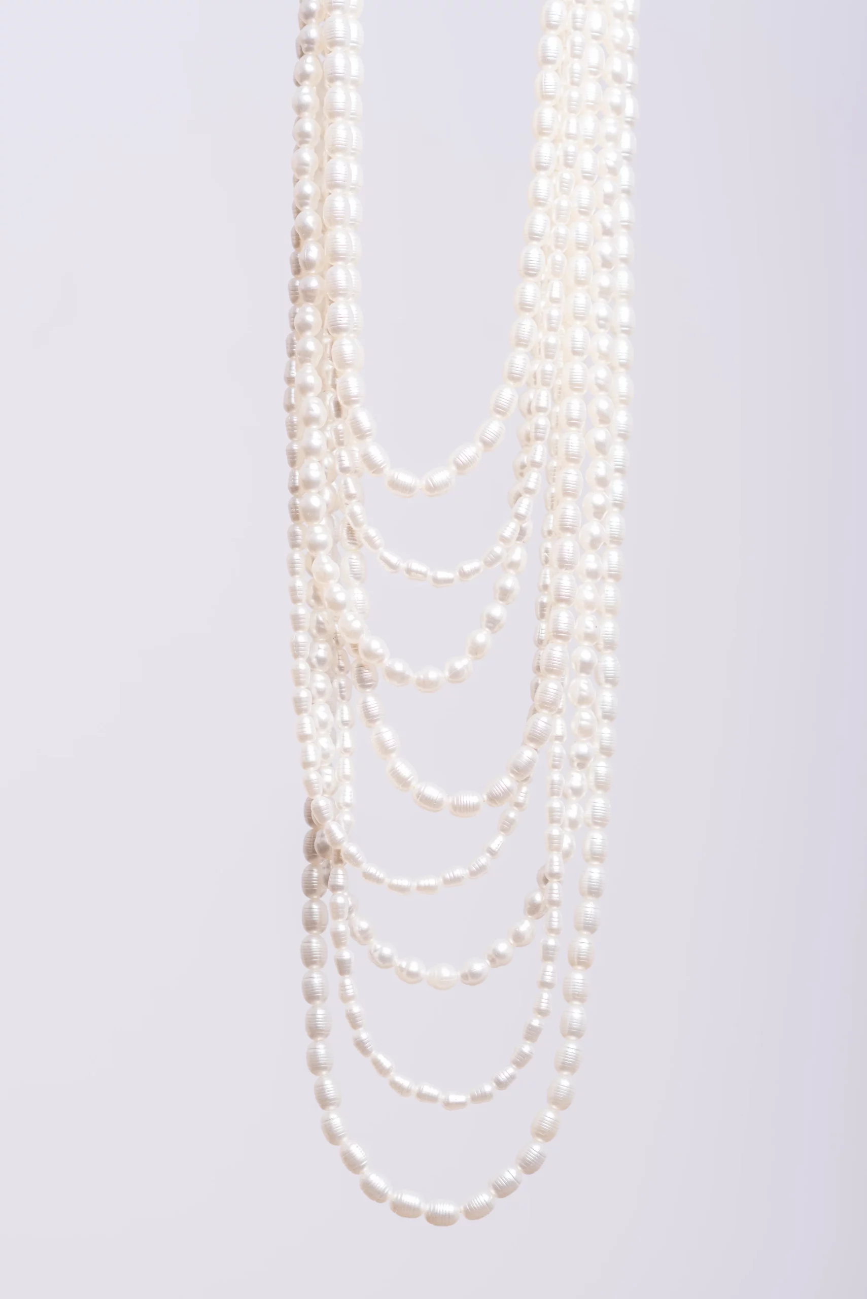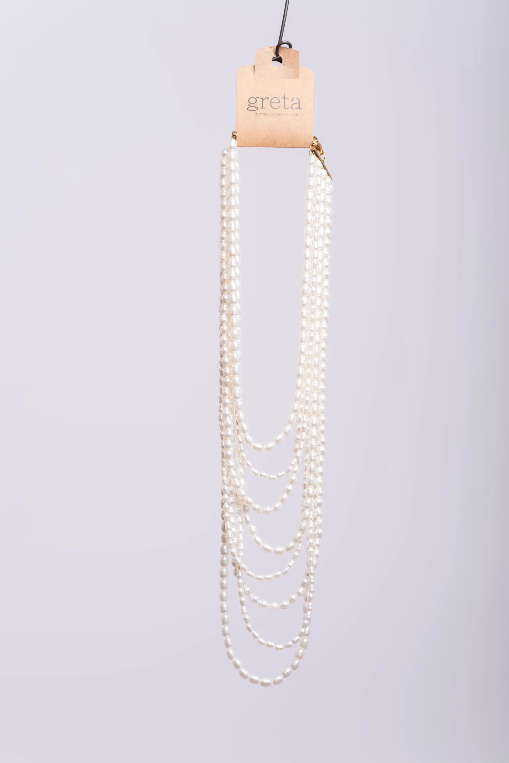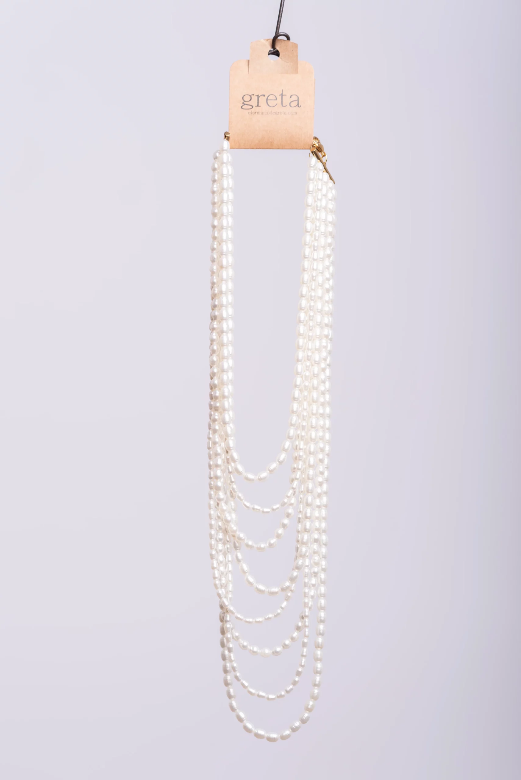 Collar de bisuteria. Cascada de perlas con engarce dorado.