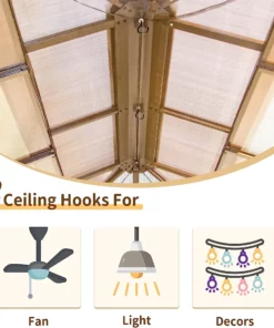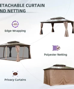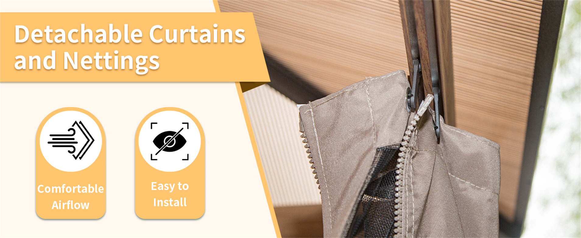 - 【INCLUYE MALLAS CONTRA INSECTOS Y CORTINAS DE PRIVACIDAD】El cenador de techo rígido está diseñado con un sistema de doble pista y una cremallera de doble cara para un deslizamiento rápido. Las mosquiteras mantienen una buena ventilación y una vista abierta y las cortinas de privacidad brindan un espacio seguro y cómodo para su familia y sus hijos, también puede mantener el espacio cálido.