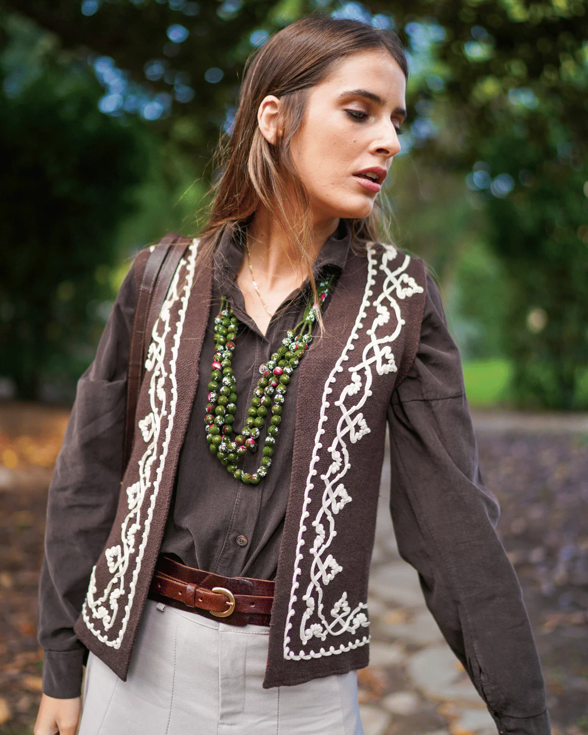 - Chaleco de punto muy gustoso abierto con detalle de bordados.