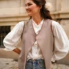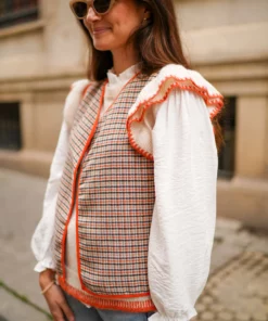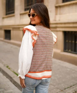 - Chaleco de pata de gallo abierto con bordes haciendo contraste.