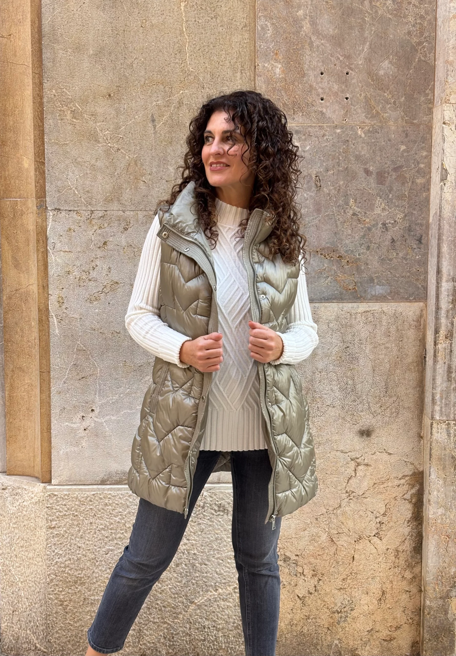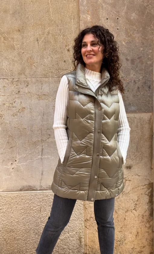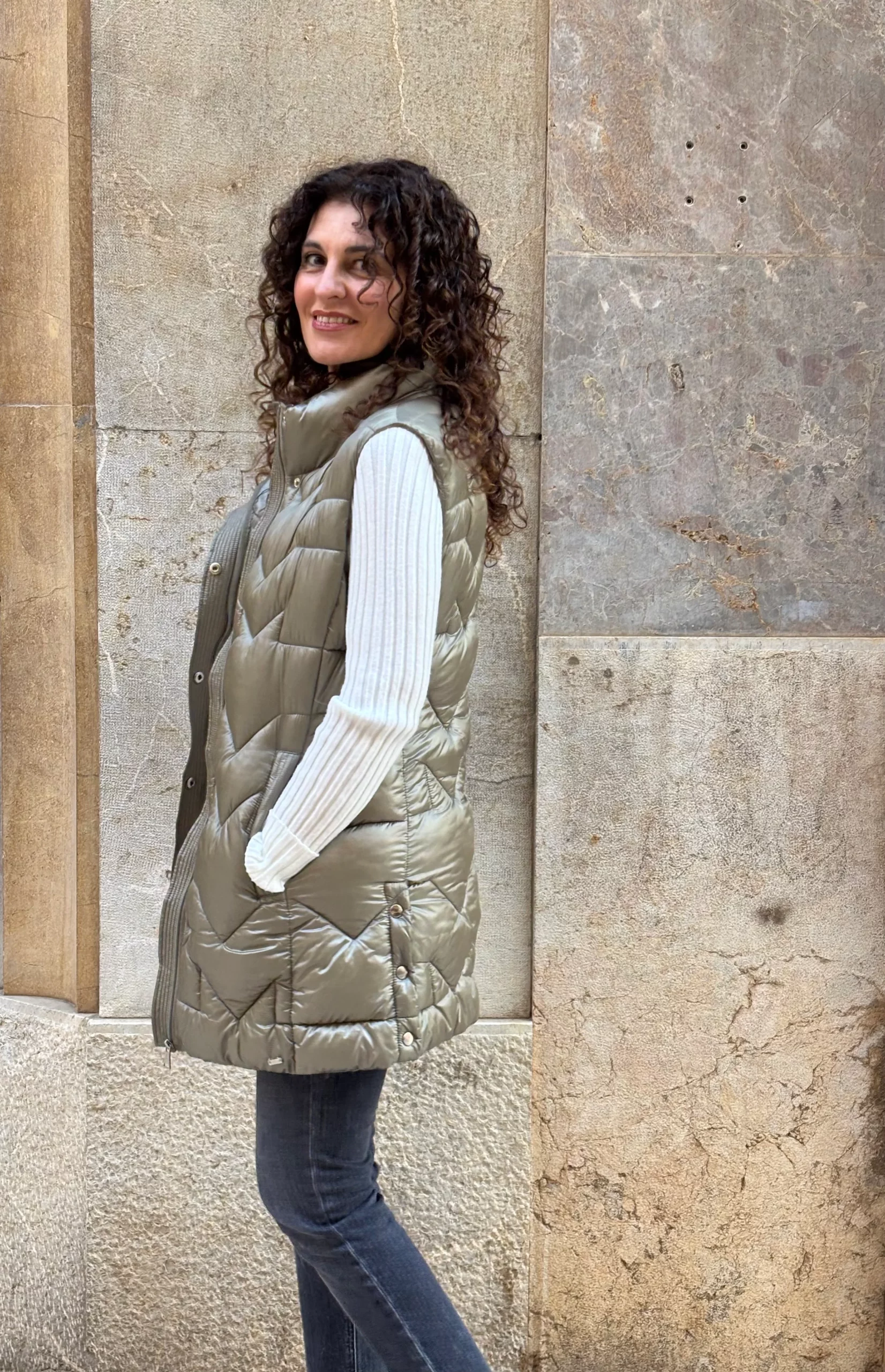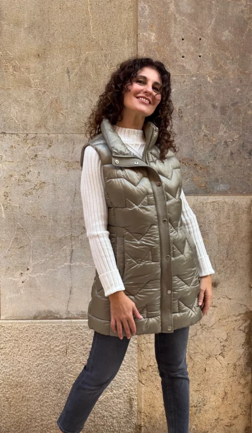 Chaleco acolchado, largo medio. Cierre con cremallera y botones. Forrado. El chaleco es una prenda perfecta para estos días con cambios de temperatura.