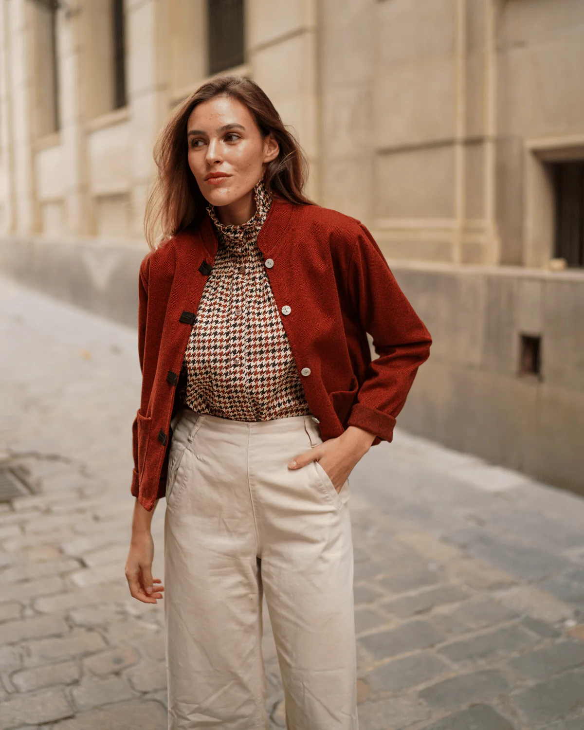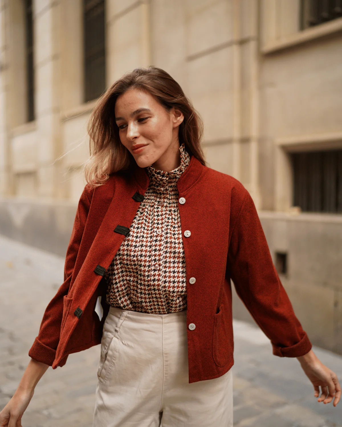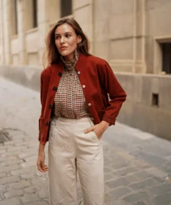 Chaqueta corta con estampado de espigas y manga larga.
