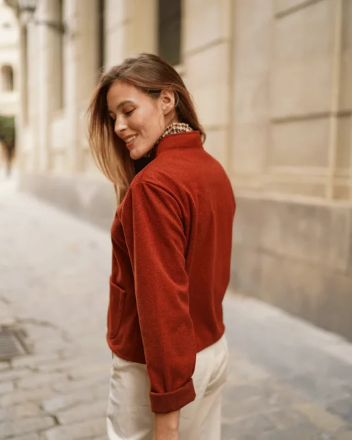 Chaqueta corta con estampado de espigas y manga larga.