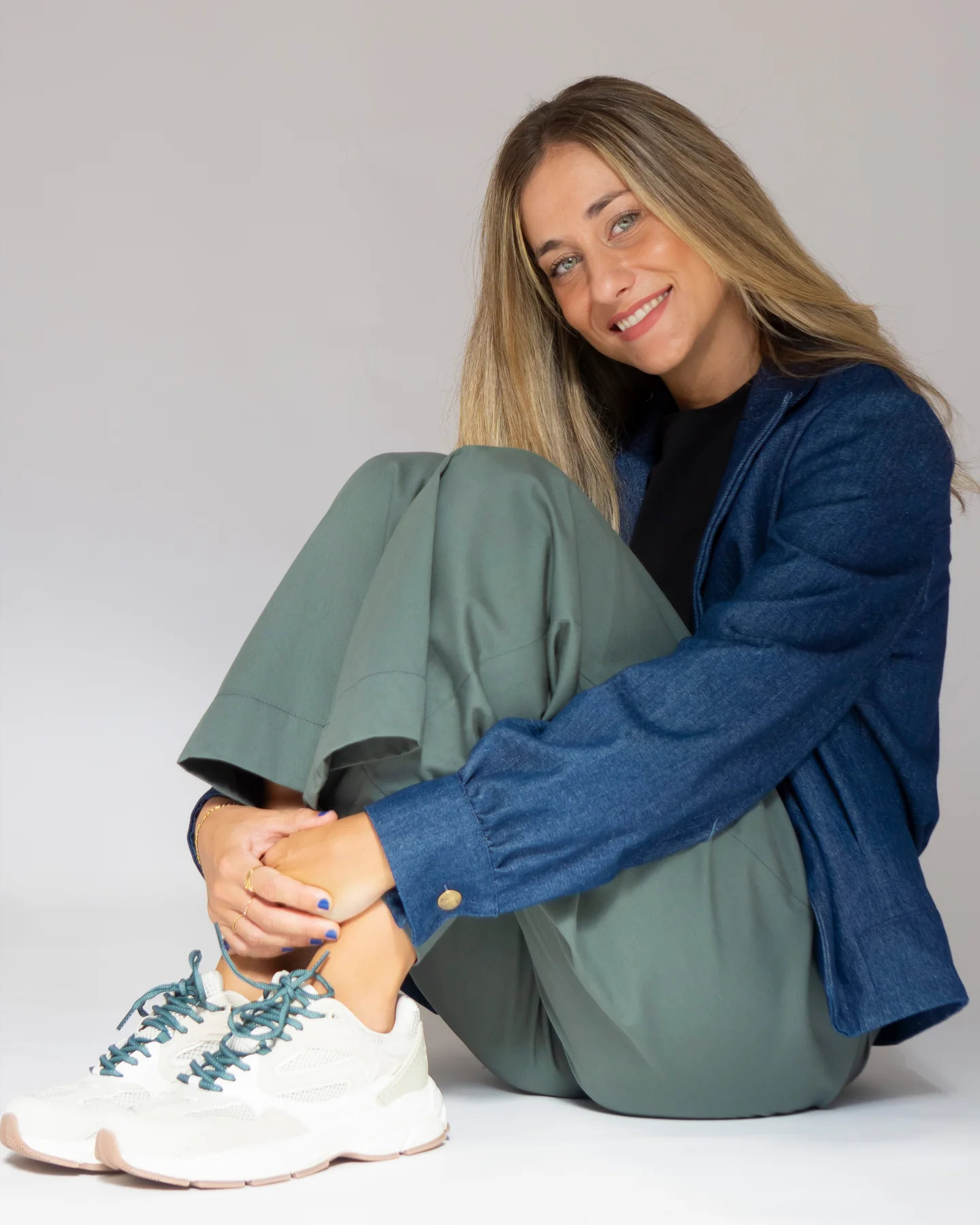 Ella: mide 1,72cm y lleva la talla S.