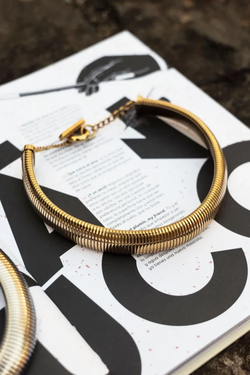 Collar de acero quirúrgico, hipoalergénico de alta calidad, pulido final con polvo de oro