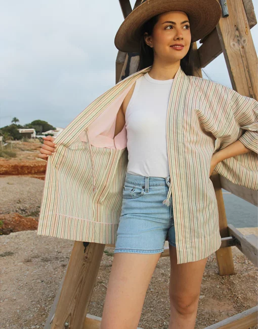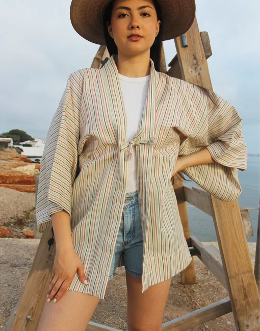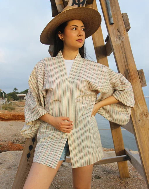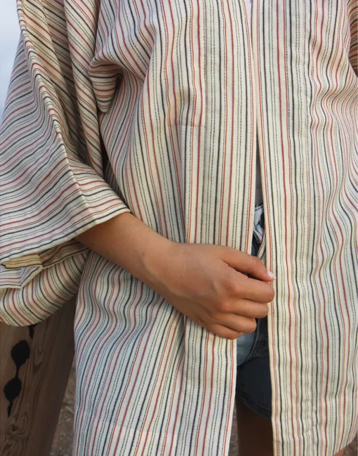 Measurements – 42″(107cm) bust – 13″(33cm) sleeve length – 30″(76cm) length.