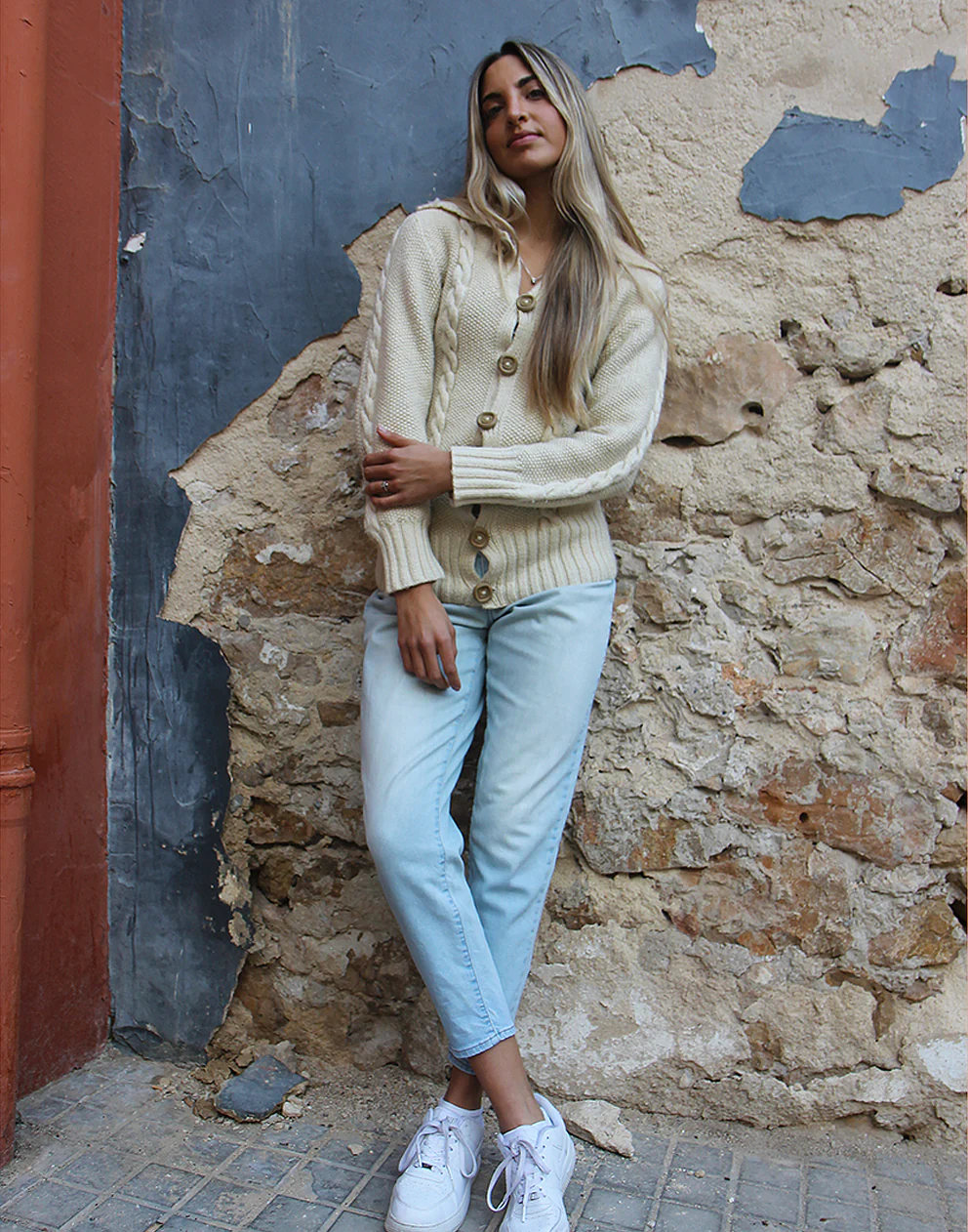Measurements – 34″(87cm) bust – 23″(59cm) sleeve length – 27″(69cm) length.