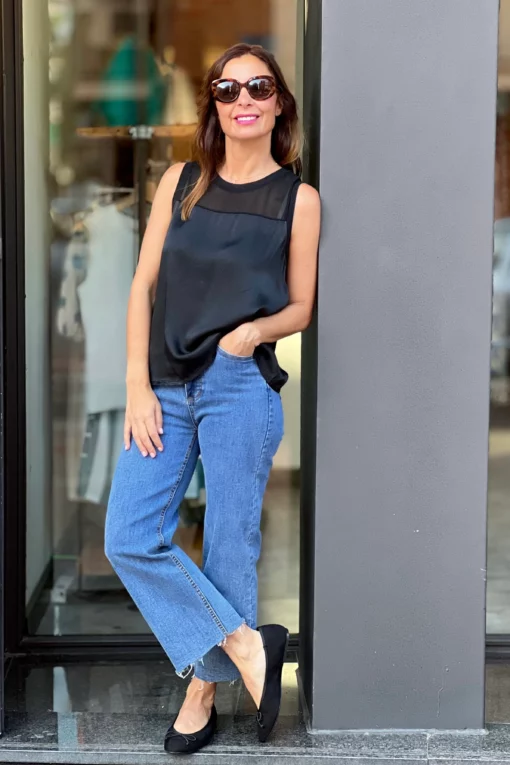 Top / Blusa sin mangas. Tejido fluido en raso y gasa. cuello redondo. Ideal para toda la temporada. Basicos de fondo de armario.