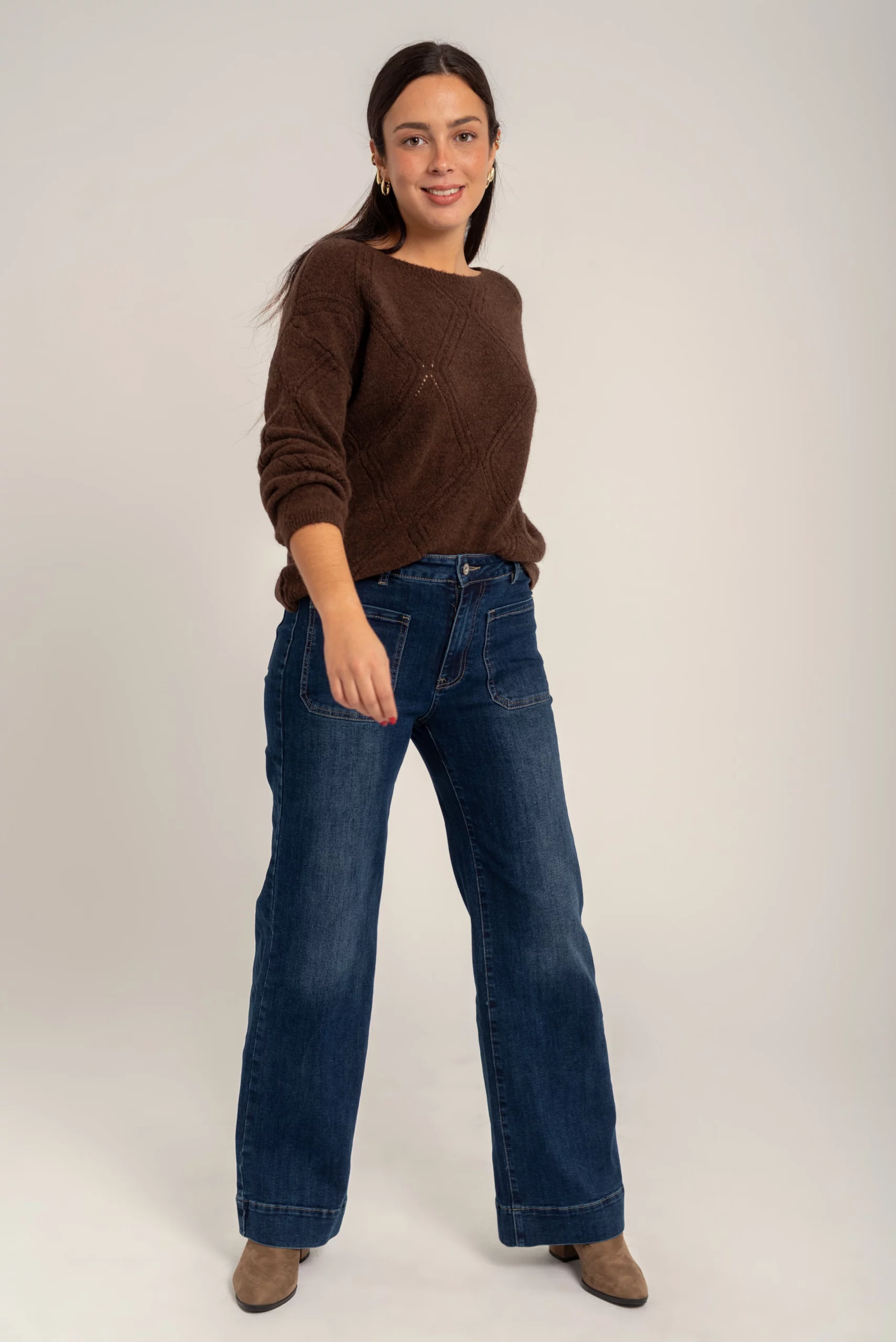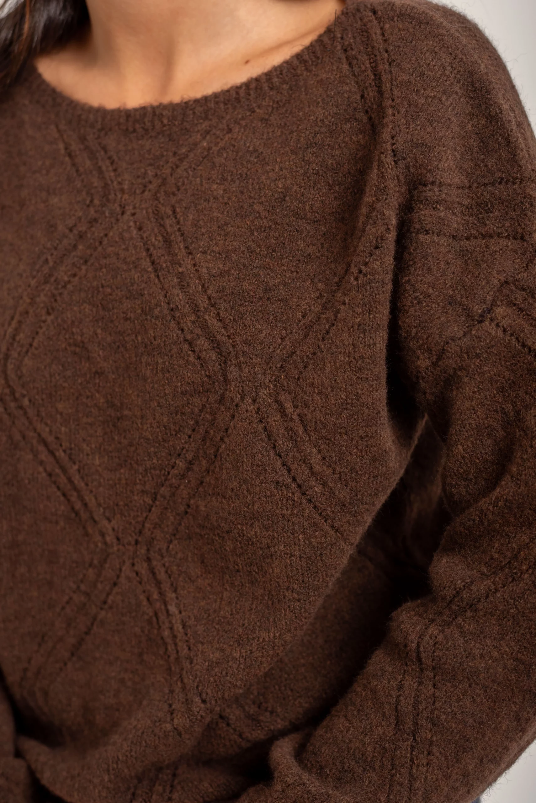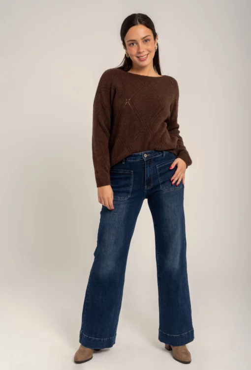 Jersey escote redondeado, manga larga. Dibujo tejido en rombos. Un básico de temporada que no puede faltar en tu armario!