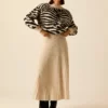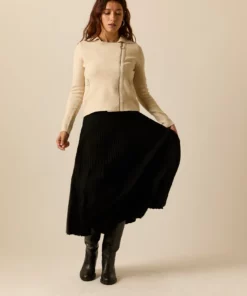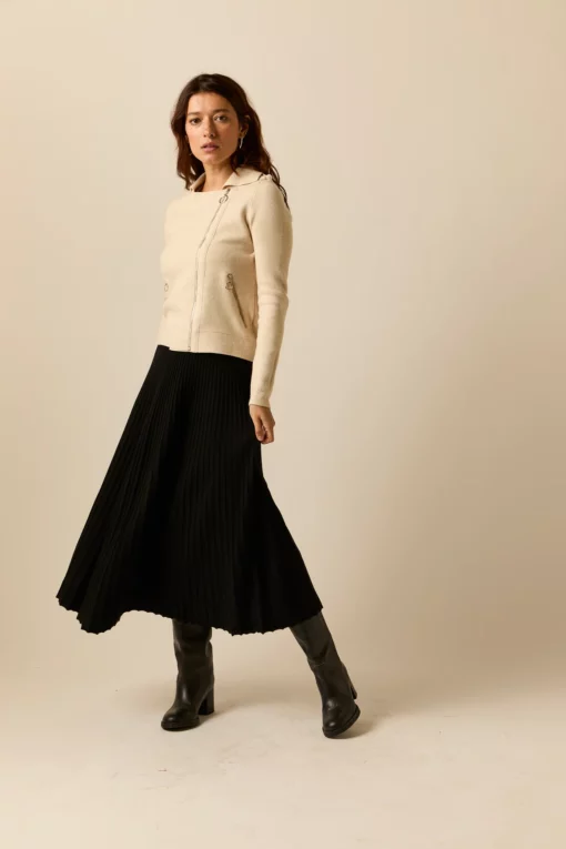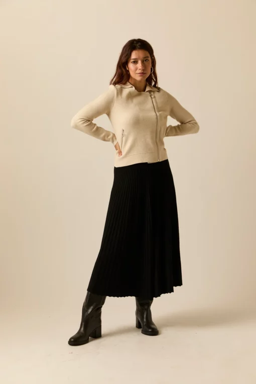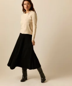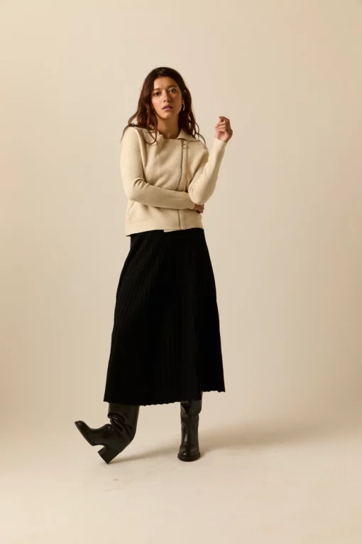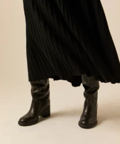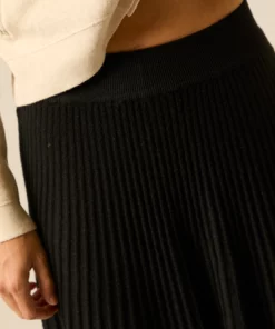 Falda midi de tablas de punto en color negro. Tiro alto, cintura elástica y diseño recto.