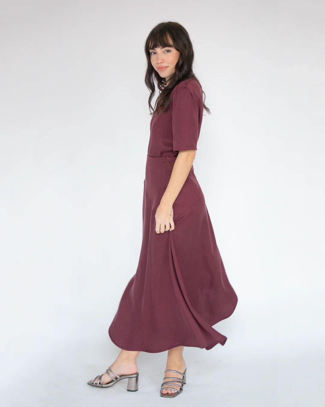 Falda con vista, no va forrada por dentro (no es necesario el forro, el tejido no transparenta y así es más ligera y tiene más vuelo).