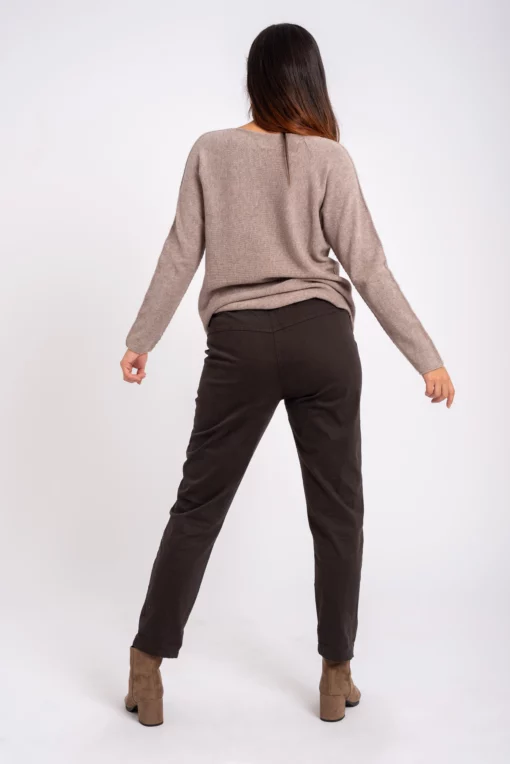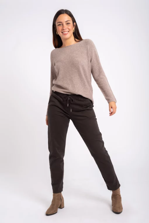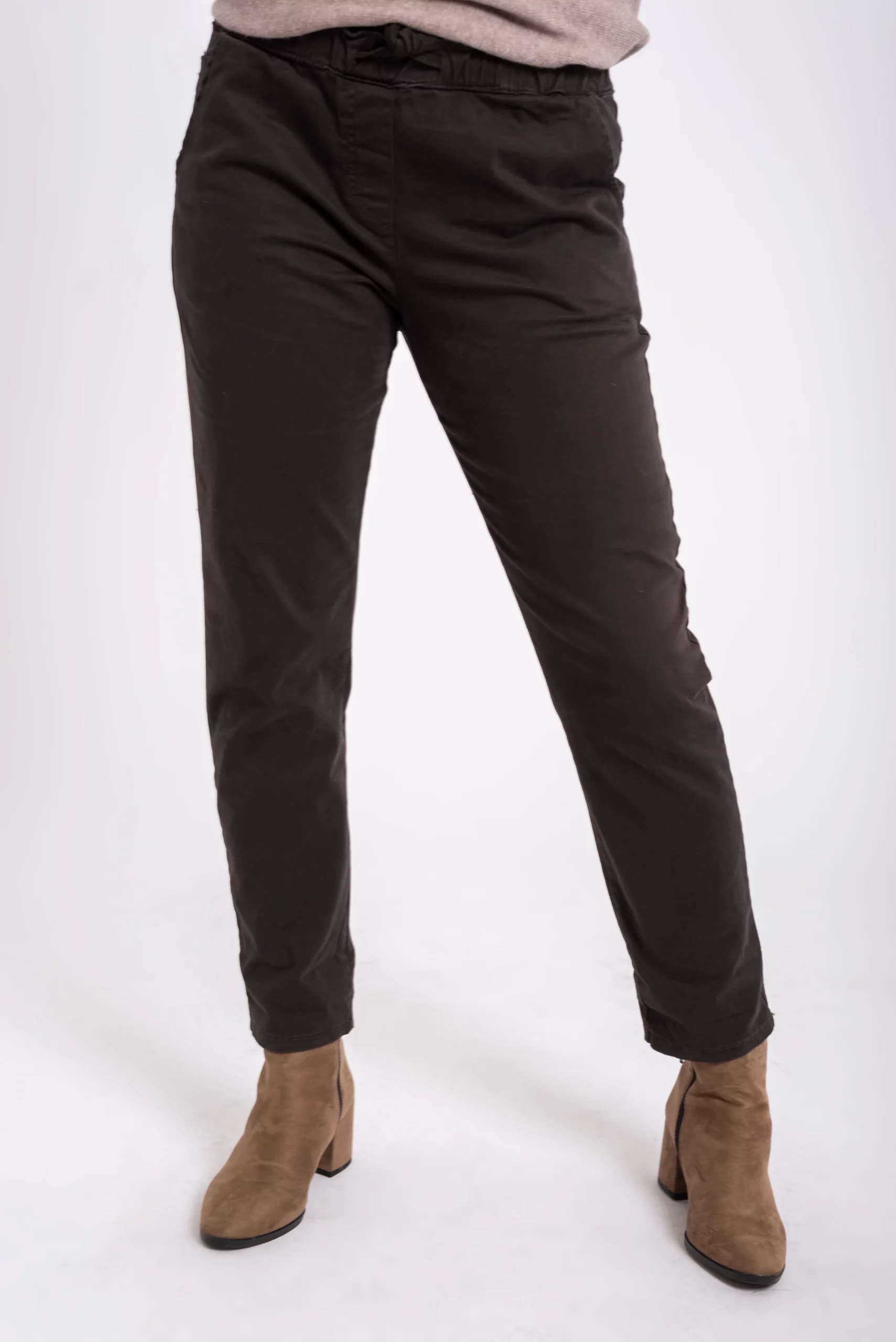 Pantalón tipo chino, con goma en cintura y cordón de ajuste. Bolsillos laterales. Cómodo y perfecto para toda la temporada. Básicos imprescindibles.