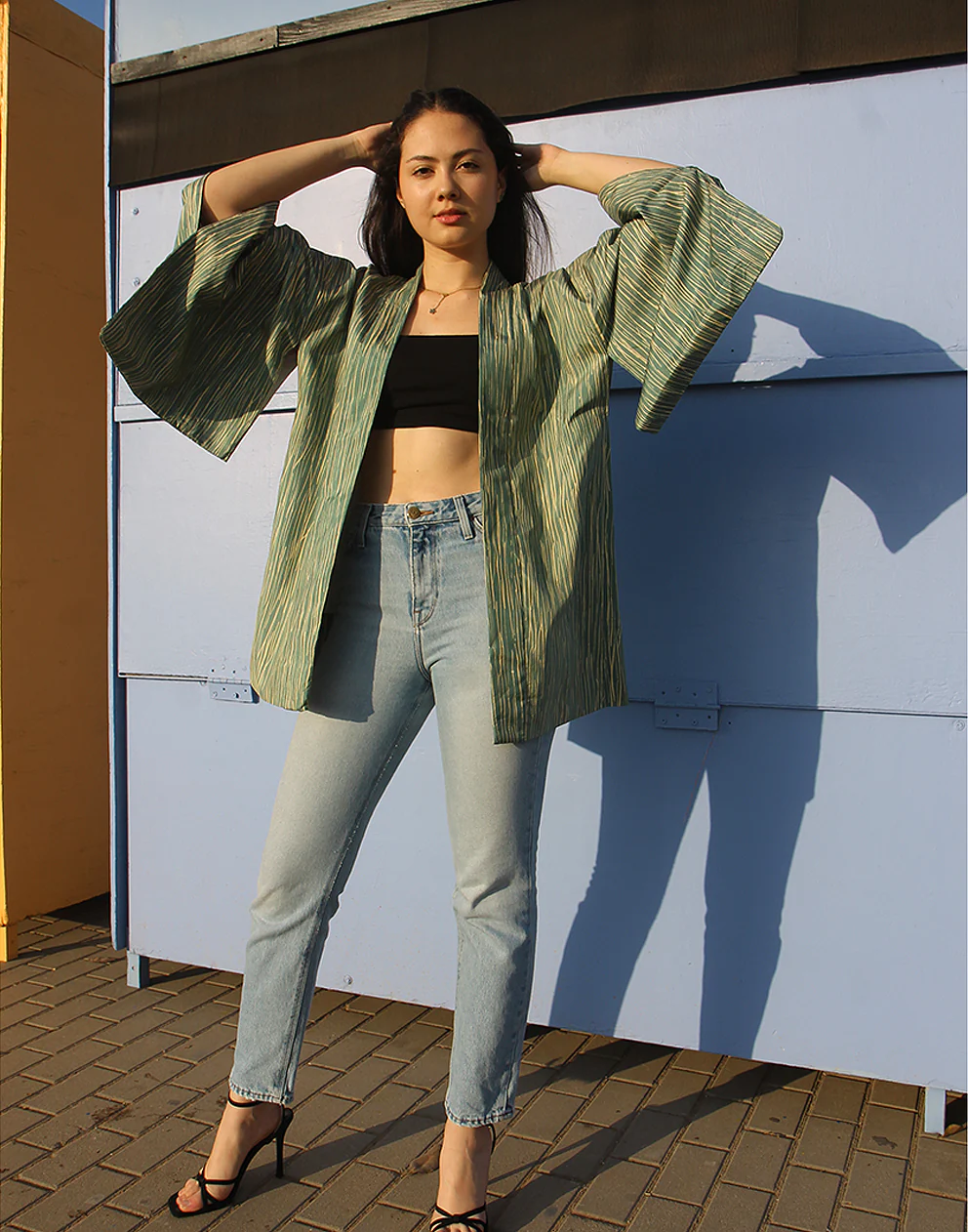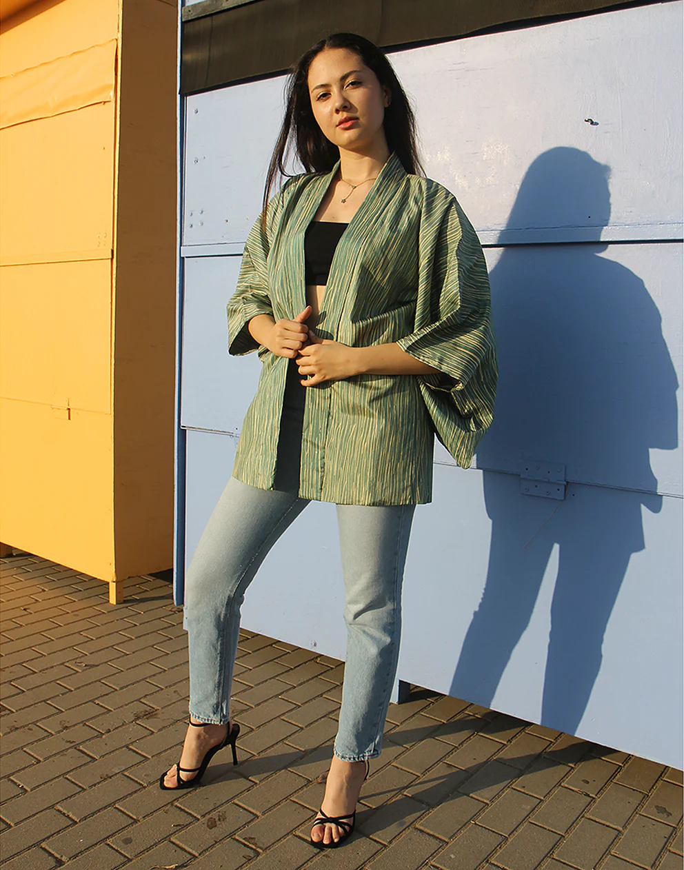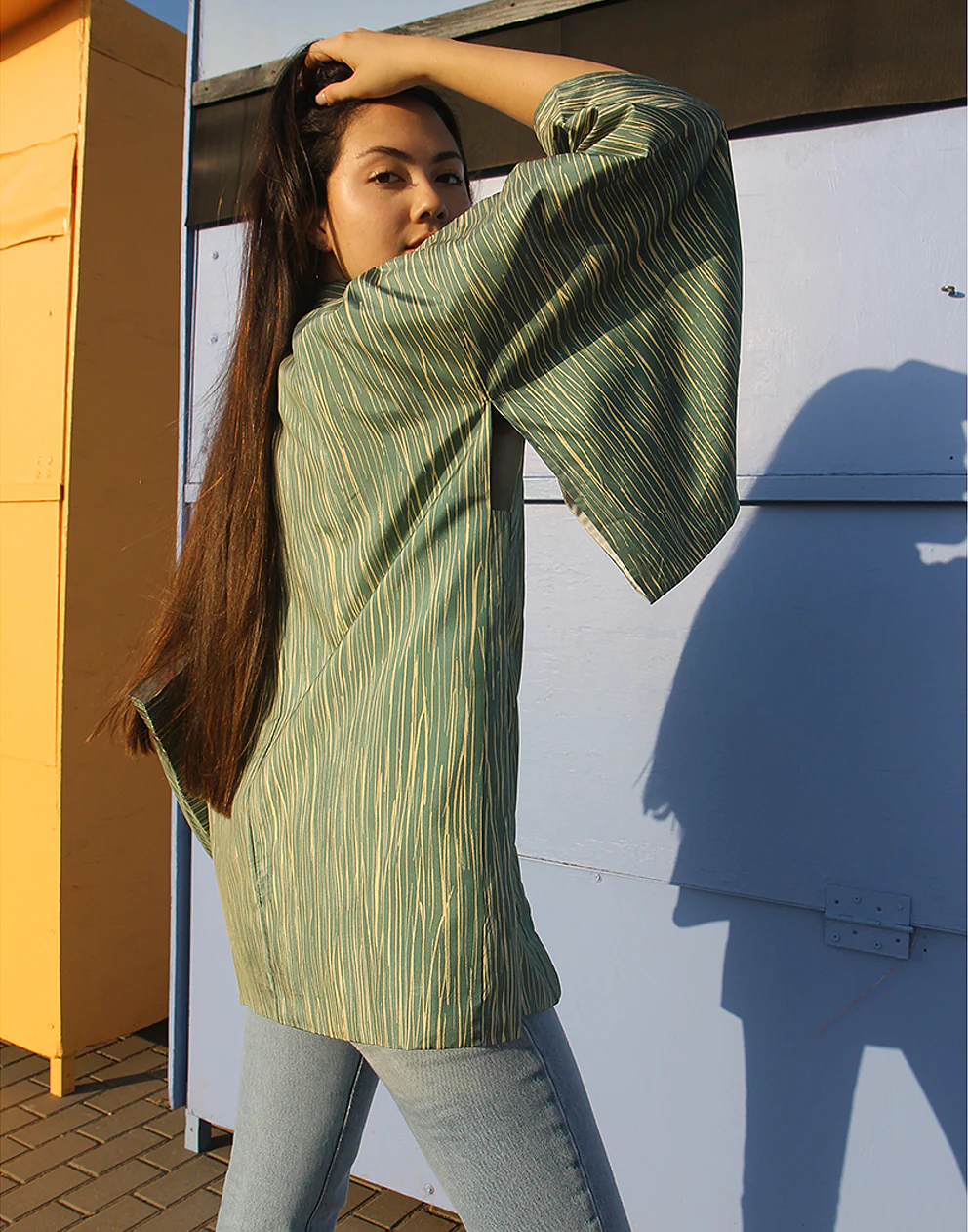 Measurements – 46″(117cm) bust – 13″(33cm) sleeve length – 30″(76cm) length.