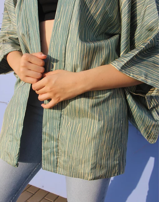 Measurements – 46″(117cm) bust – 13″(33cm) sleeve length – 30″(76cm) length.